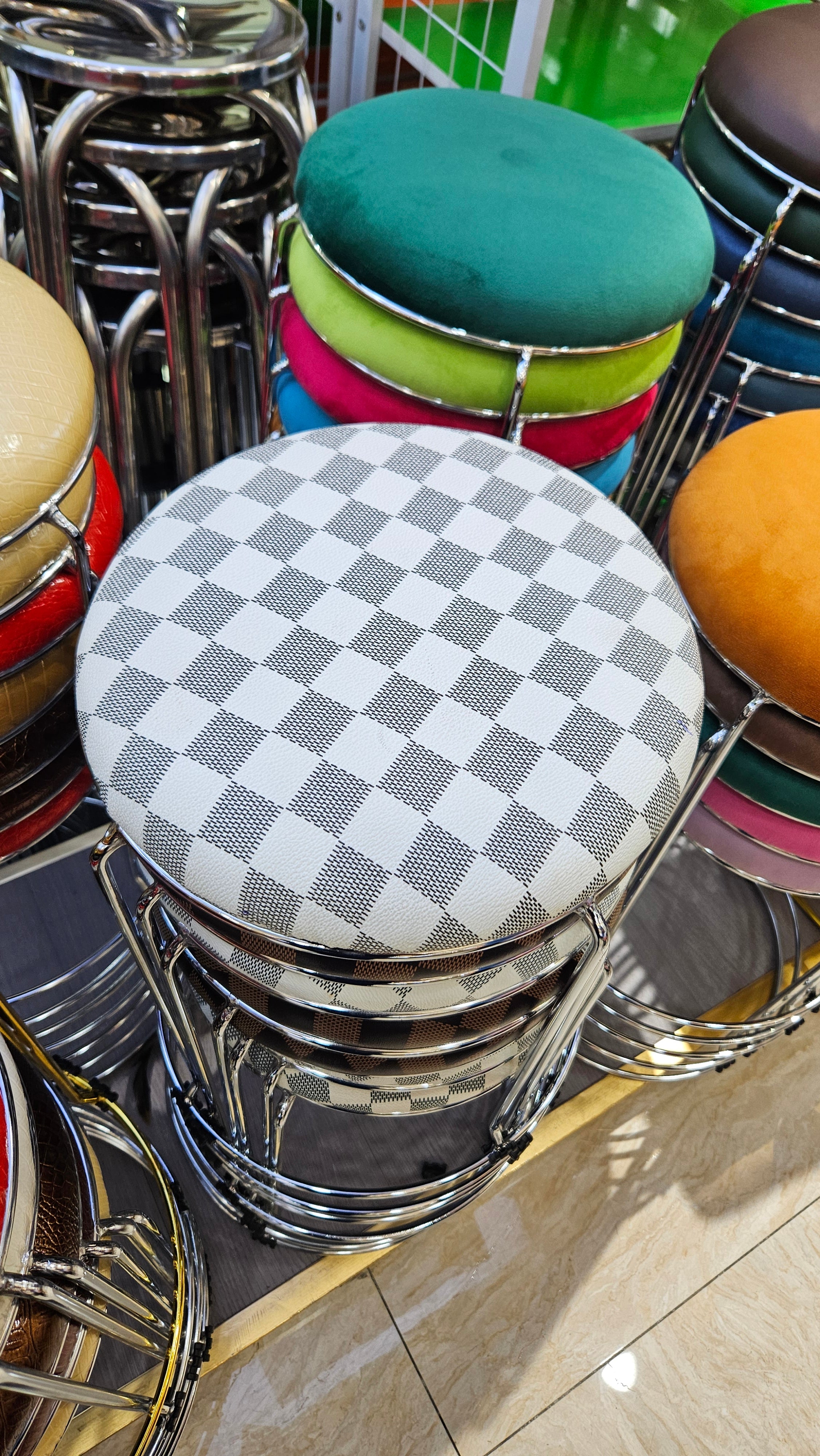 Add a touch of contemporary luxury to any room with this chic, lightweight stool. Featuring a sleek, metallic silver-finished frame paired with a plush, velvet-textured seat in a unique white grey pattern, this stool is the perfect marriage of style and function. Whether you need a sophisticated vanity seat, a pop of color in the living room, or a functional accent piece for small spaces, this stool delivers high-end aesthetics without the bulk.