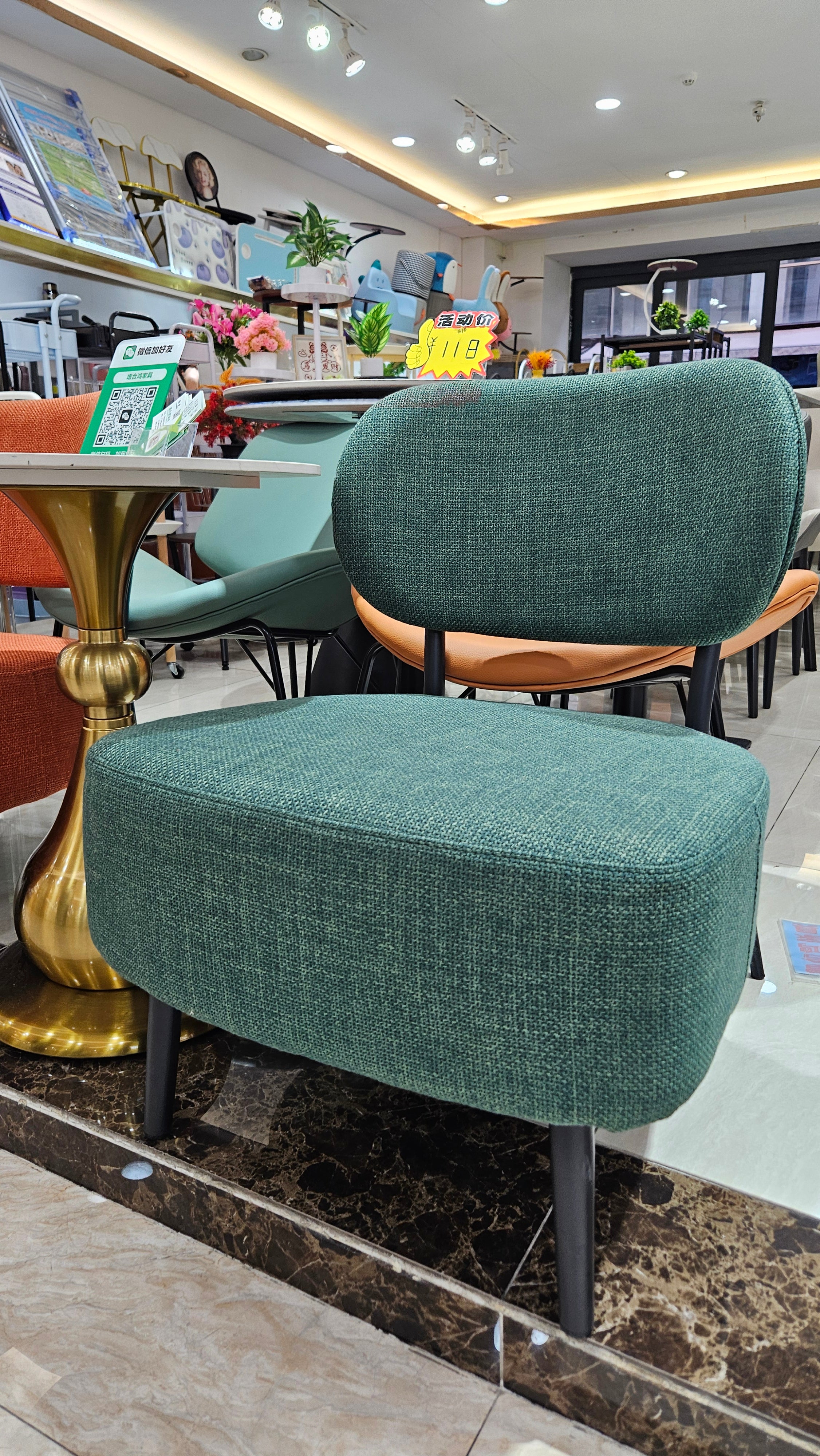 Accentuate your living space with this striking green accent chair. Designed with a nod to mid-century aesthetics, this chair combines a bold, energetic color palette with a compact, low-profile silhouette. Whether you’re looking to anchor a cozy reading nook or add extra seating to a lounge, these chairs offer the perfect blend of artistic flair and reliable comfort. The textured fabric is soft to the touch yet durable enough for daily use, while the sturdy black tapered legs provide a grounded, modern contrast.