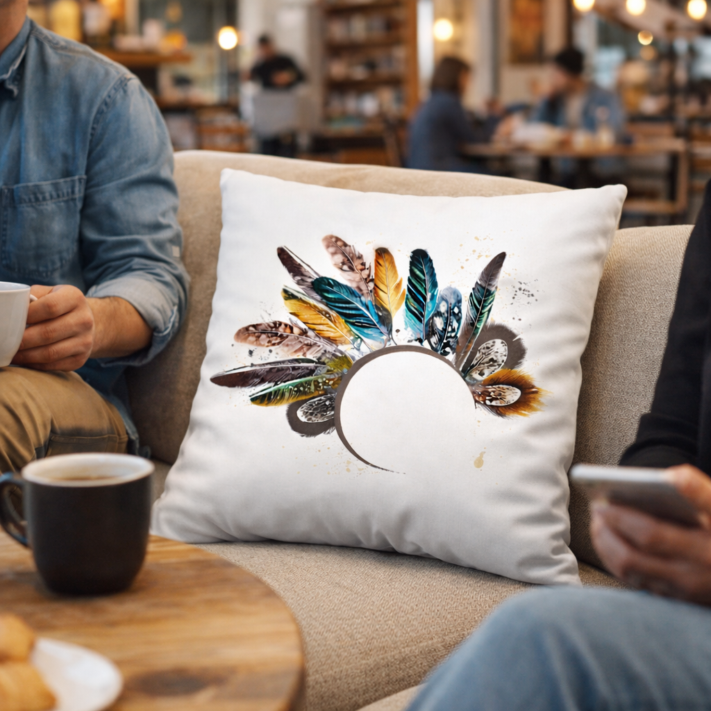 Modern Minimalist Square Cushion Cover, 17 x 17 Inch Feather Design Farmhouse Bohemian Decorative Pillowcase for Living Room Bedroom