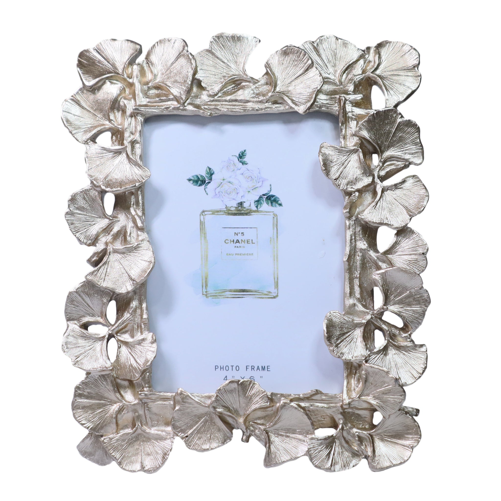 3D Picture Frame for 4x6 inch Photo, Gold Copper Ginkgo Leaves Photo Frame Border, Handmade Frame, 8 inch 22 cm