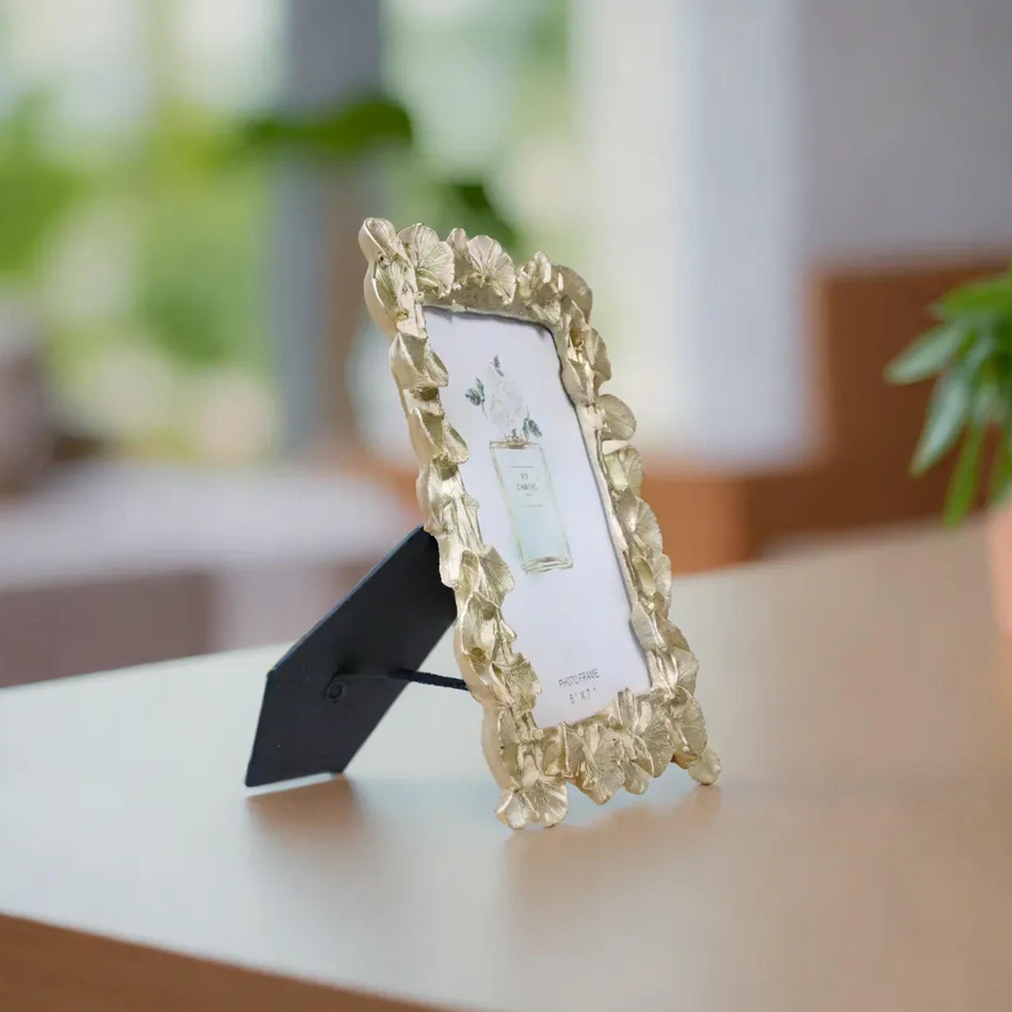 5x7 inch Photo Frame, 3D Golden Ginkgo Leaves Picture Frame Border, Handmade Decorative Frame 9 inch 23 cm