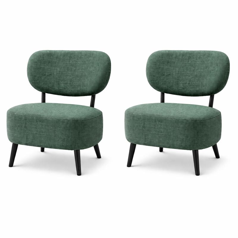 Accentuate your living space with this striking duo of green accent chairs. Designed with a nod to mid-century aesthetics, these chairs combine a bold, energetic color palette with a compact, low-profile silhouette. Whether you’re looking to anchor a cozy reading nook or add extra seating to a lounge, these chairs offer the perfect blend of artistic flair and reliable comfort. The textured fabric is soft to the touch yet durable enough for daily use, while the sturdy black tapered legs provide a grounded, modern contrast.