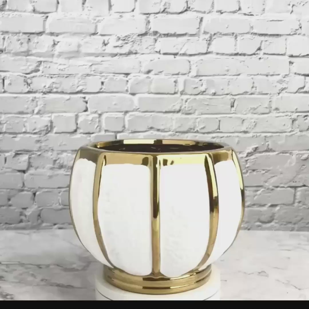 • MODERN & MINIMALIST: Featuring a pristine white color and beautiful golden stripes, this simple bowl lets the natural beauty of your flowers or plants shine through. The design complements any décor style; be it minimalist, farmhouse, classic charm, rustic, country, etc. The white vase offers both style and functionality.