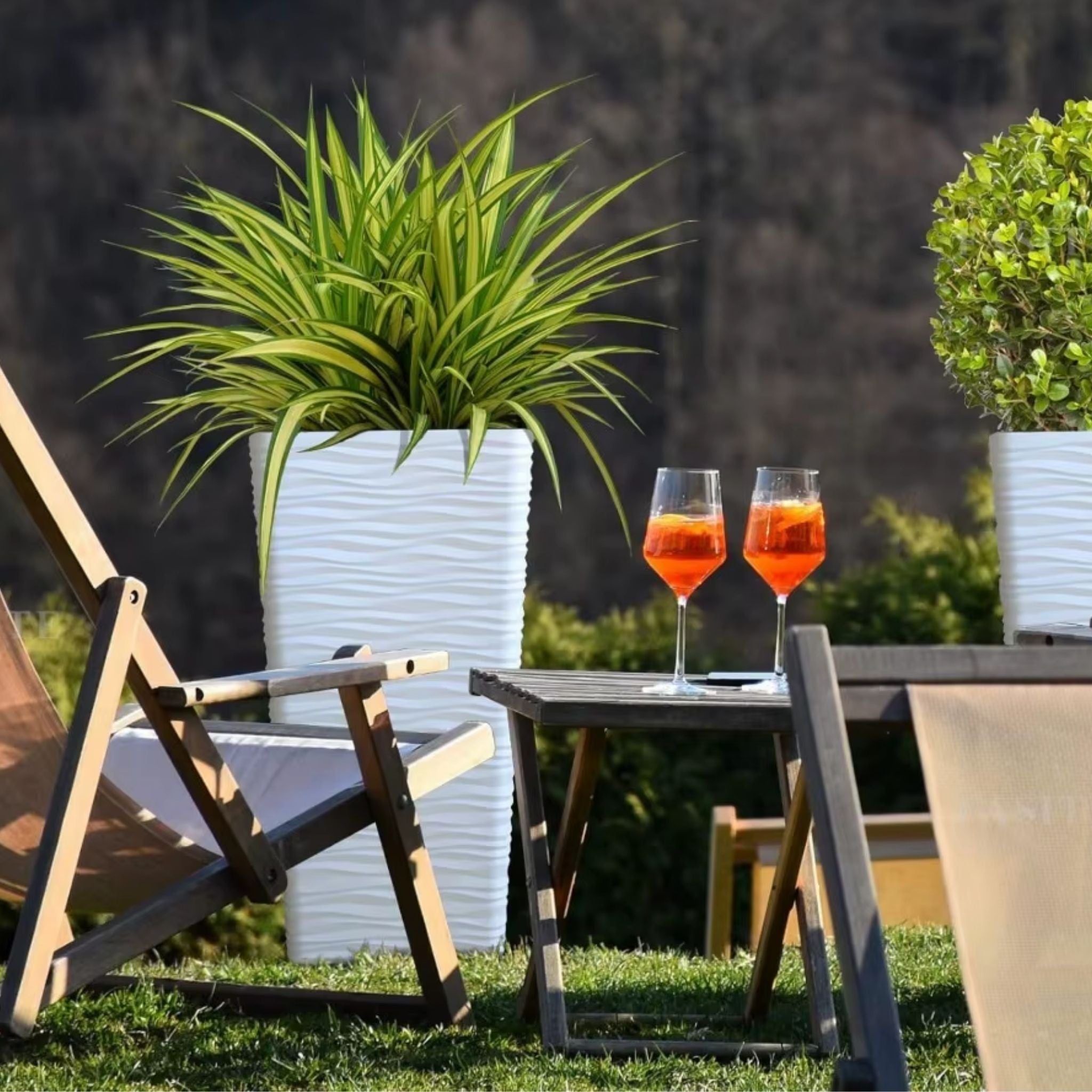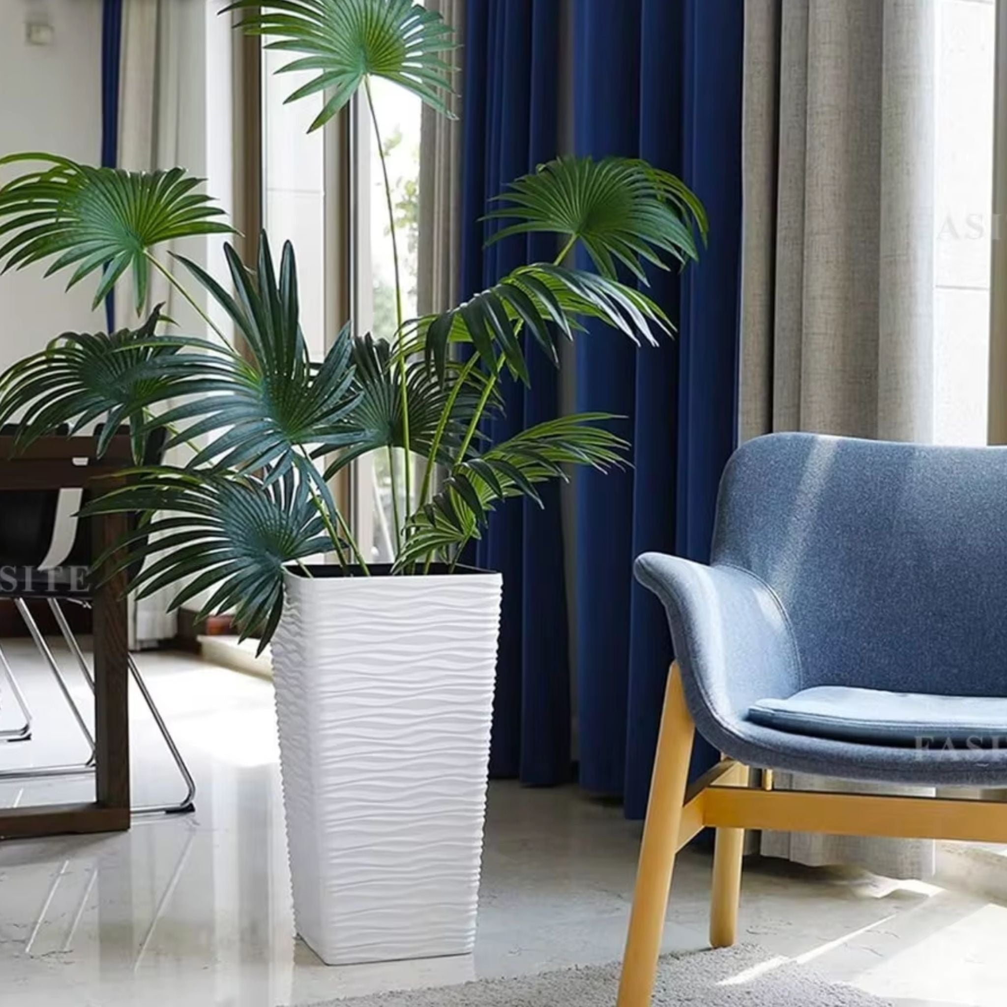 Bring a touch of modern minimalism to your space with this 22-inch Tall White Planter Pot set, designed for both indoor and outdoor use. Its sleek mid-century style and high-quality plastic construction make this pair of pots a perfect decorative accent for any home, office, patio, front porch, or garden. Whether placed at your entrance, in the backyard, or inside your living room, this versatile flower vase-style plant pot with glazed wave pattern complements all environments while showcasing your favorite real or faux plants. There is a marked space at the bottom of the pot where you can easily drill a hole to prevent overwatering and promote healthy plant growth.