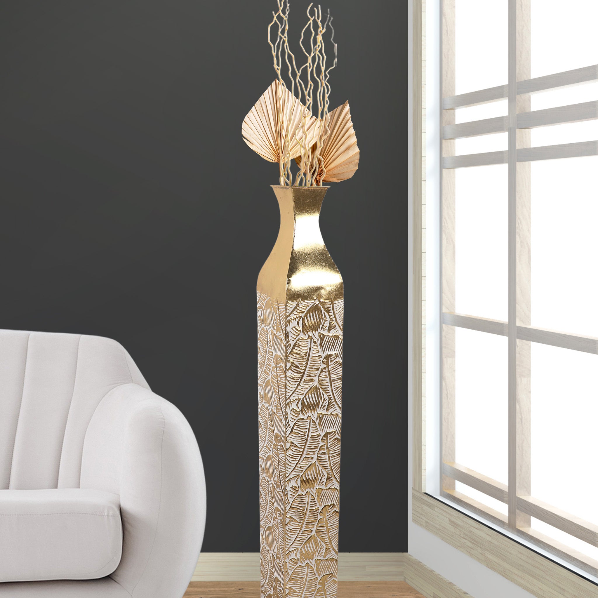 • GOLD FINISH: Finished in gold, every rustic floor vase can match any interior style from traditional to modern.