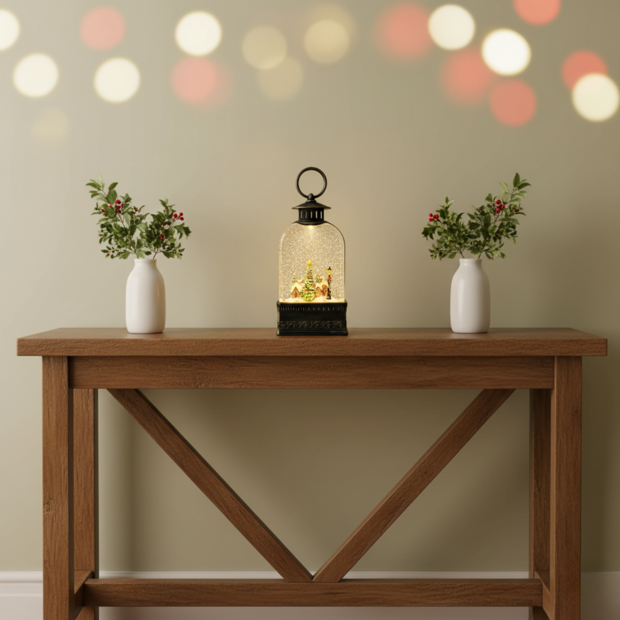 Celebrate the true spirit of Christmas with our illuminated Santa Christmas Snow Globe that dazzles with automatically changing classic xmas tunes. This enchanting christmas globe showcases a figurine of Santa Claus with a Christmas tree, encased in a ball with delicate snowflakes that gently swirl when lit. This high quality acrylic figurine can be powered either by a USB cable or by batteries. With compact size, 25 cm or 10 inch, it offers versatile display options for mantels, tabletops, or shelves. Warm LED illumination brings the scene to life, which can be turned on or off with a sliding switch. The holiday music can also be turned on or off depending on your mood. This could be the most unique gift you can offer to family and friends this season of giving!