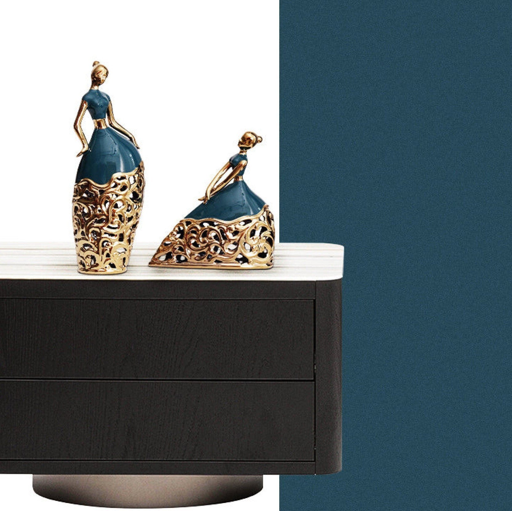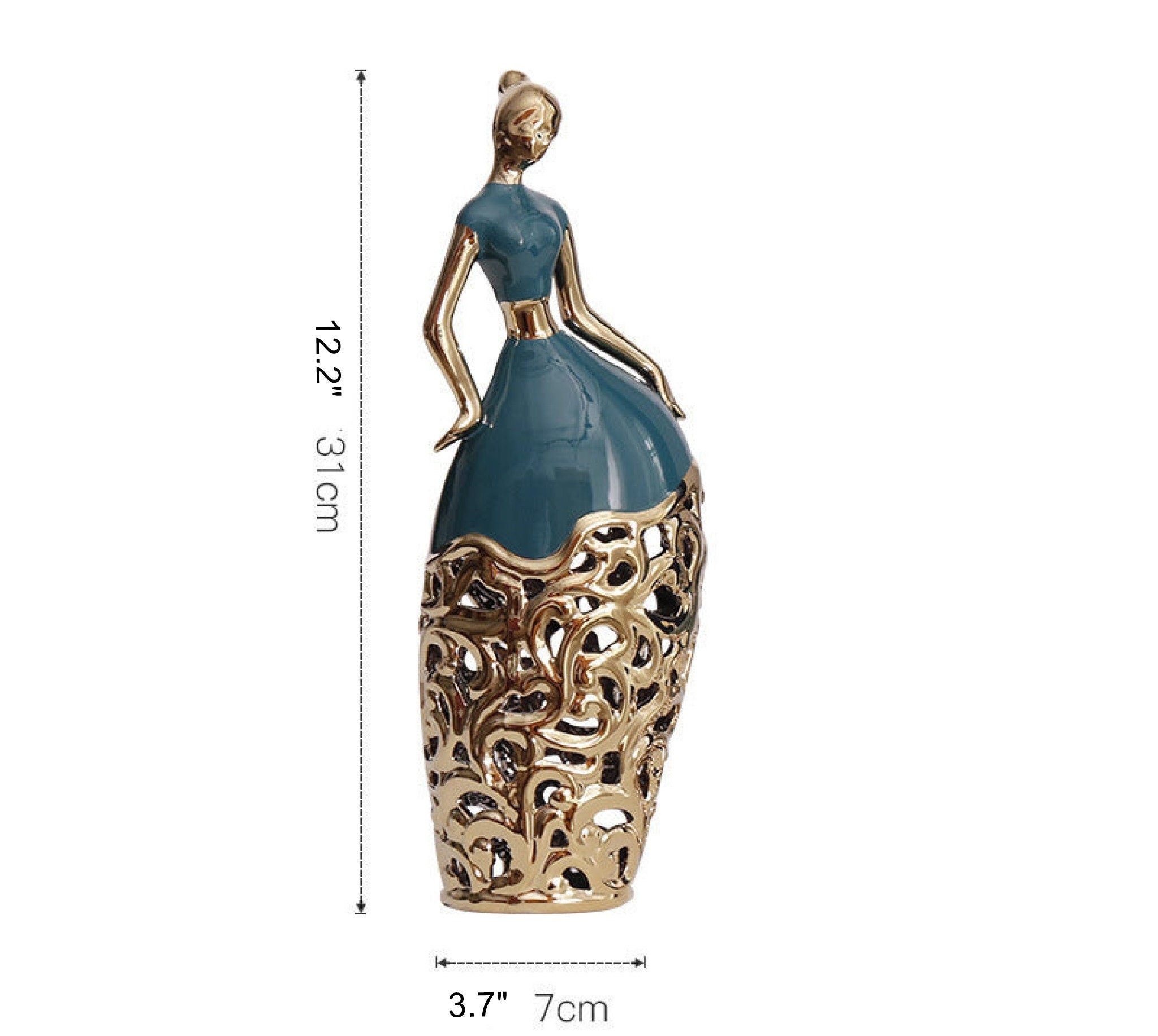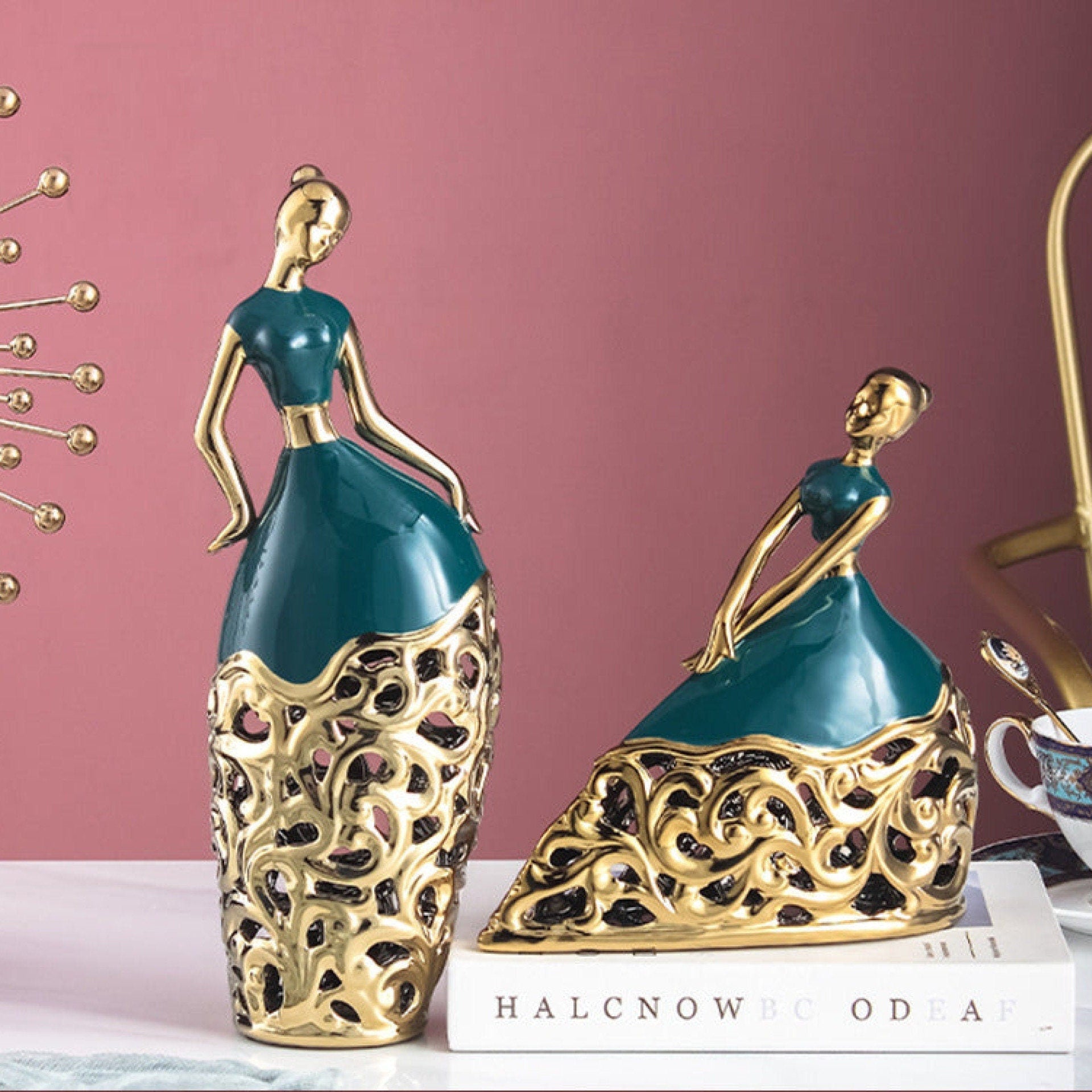 2 Pc Green and Gold Ceramic Dancer Figurines, Coffee Table Decor, Unique Gift, Centerpiece, Home Decor, Countertop Decor, Gift