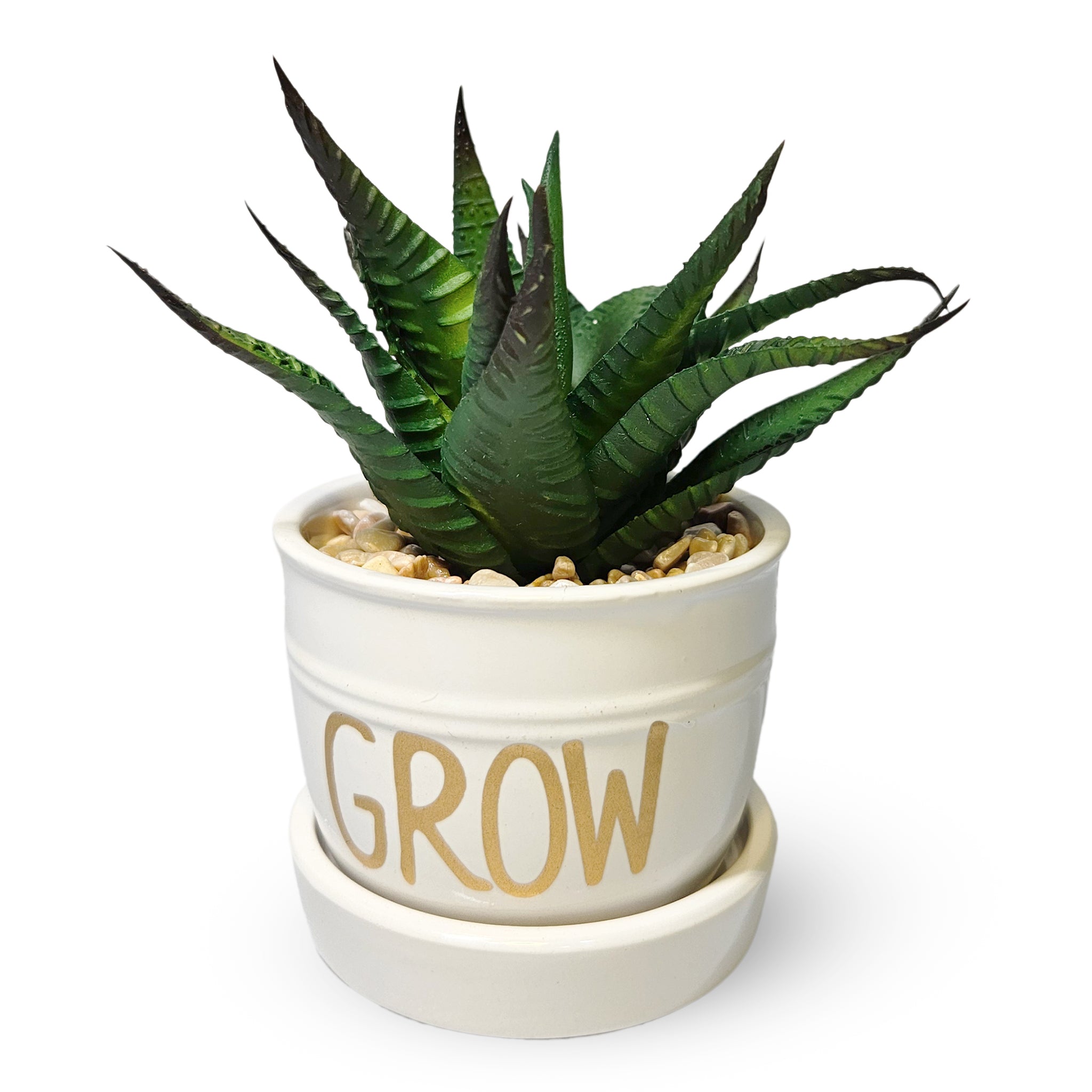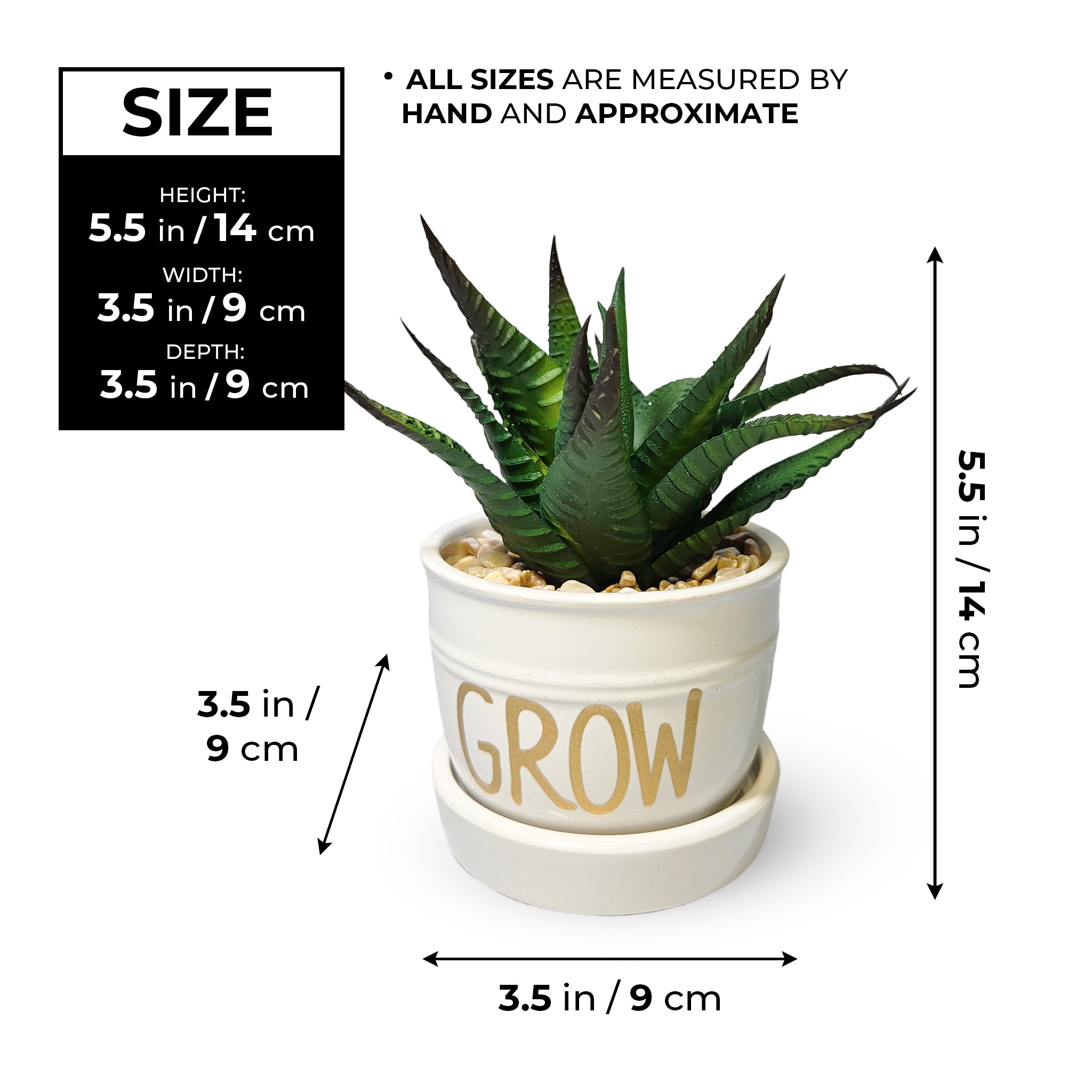 Fake Haworthia Succulent in White Ceramic Planter 5" Tabletop Centerpiece