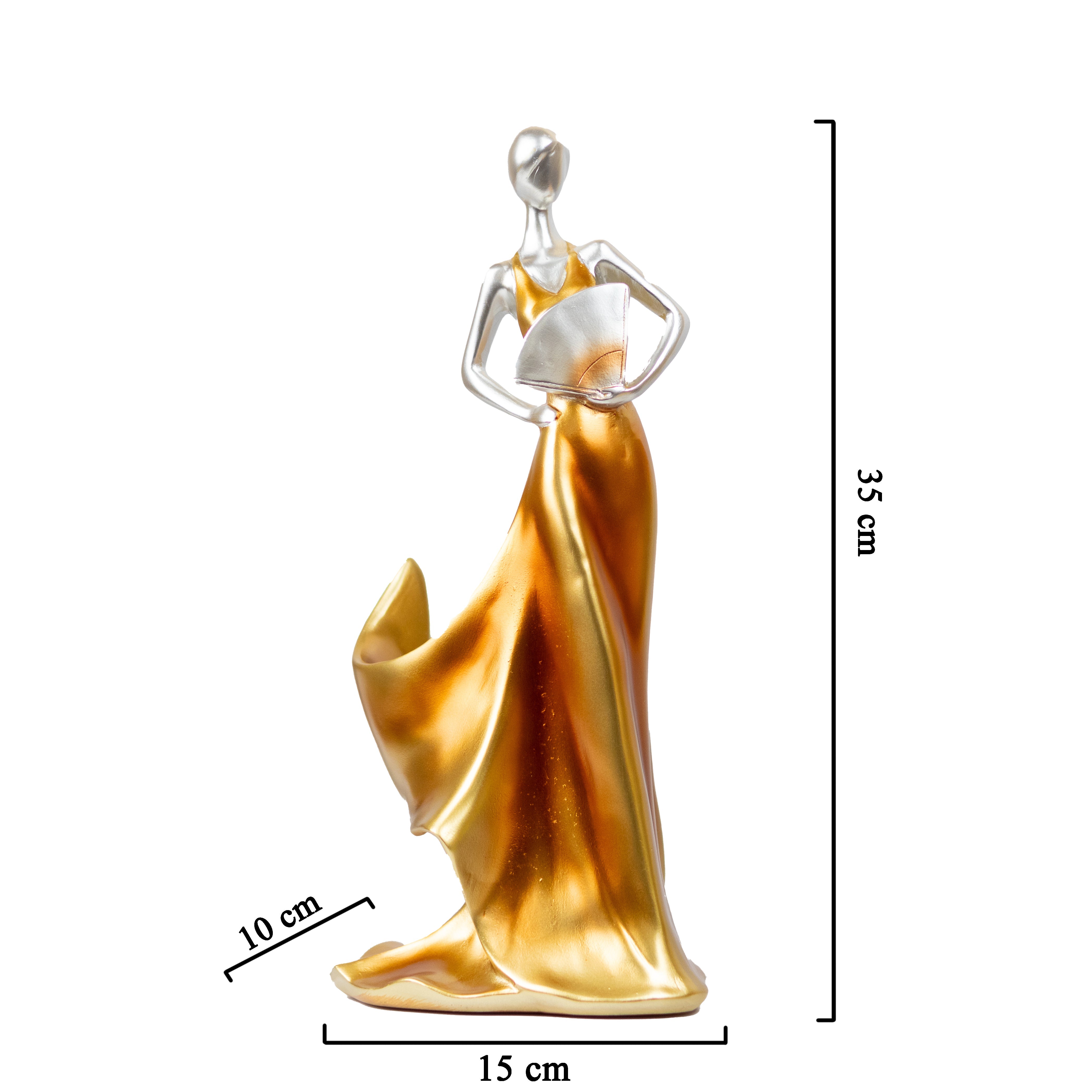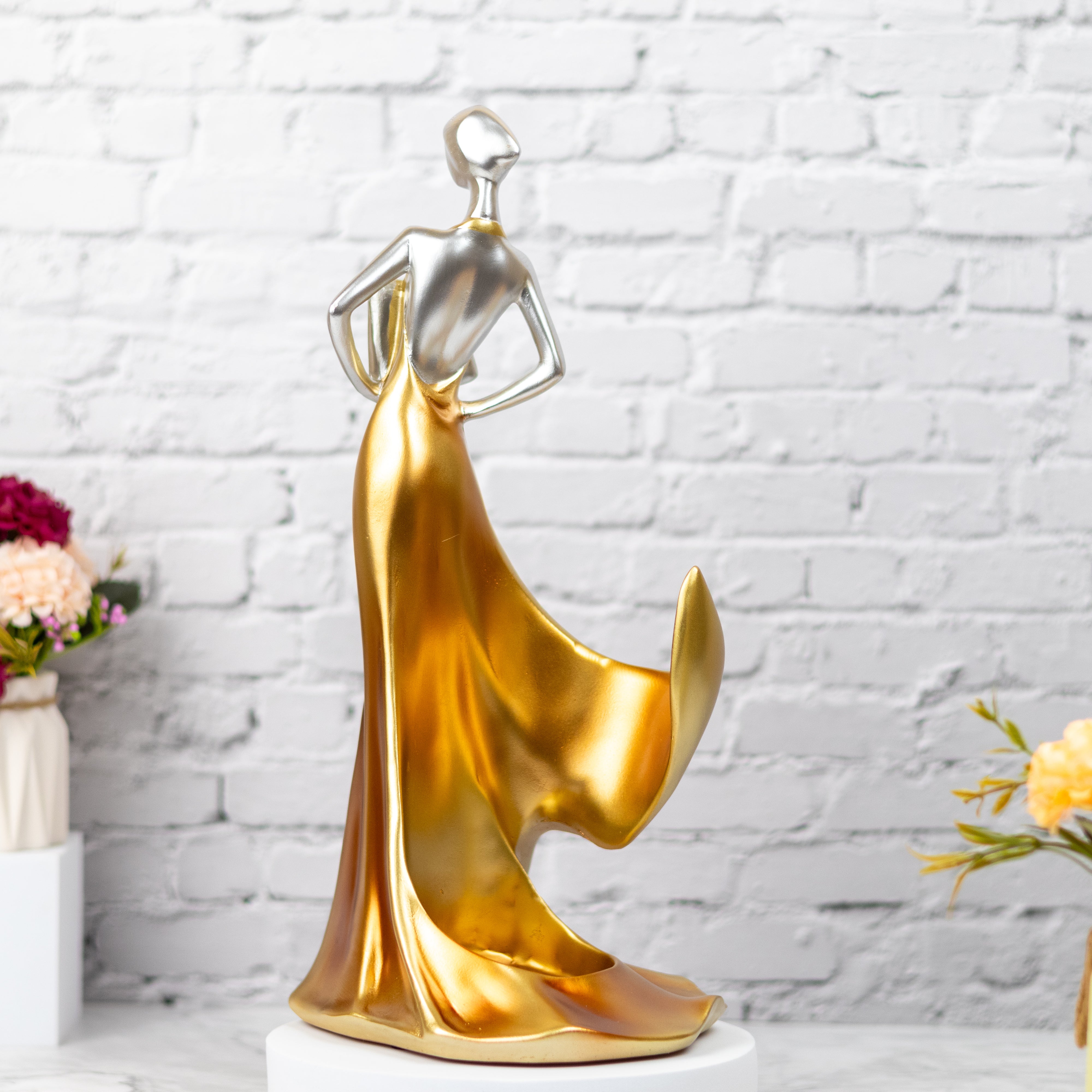 She's beautiful, she's strong, and she holds your wine perfectly. This elegant bottle holder is the perfect addition to any gathering. With her flowing gown and stunning teal and golden color, she'll add a touch of sophistication to any party.