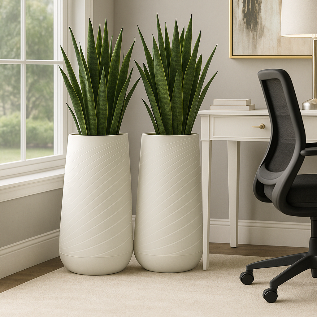 Set of 2 Tall White Indoor Decorative Planter, Modern Contemporary Self Watering Pot Home, Porch, Patio Decor Gifts