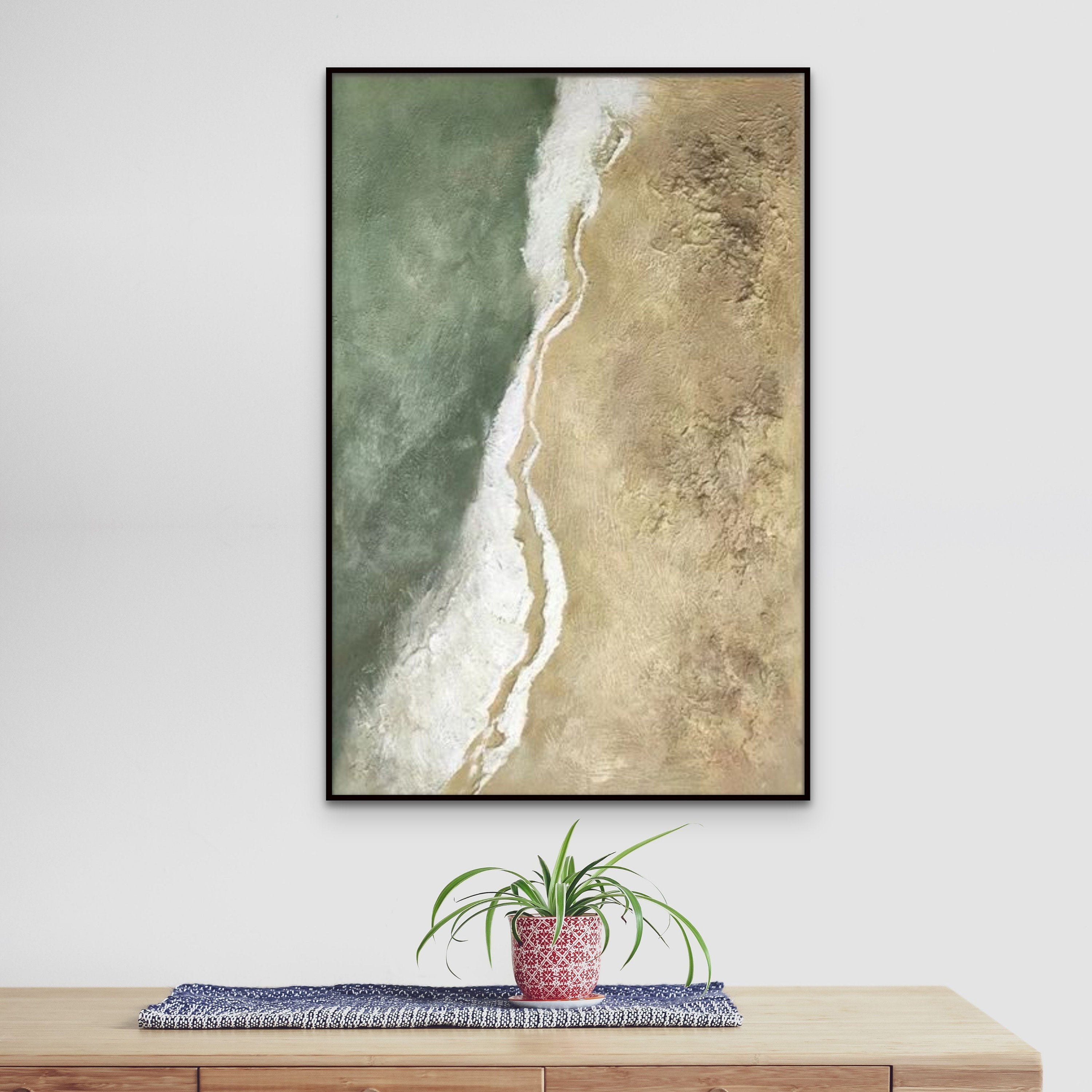 Original Seascape Wall Painting, Textured Acrylic Canvas, Minimalist Boho Beach Art, Housewarming Gift