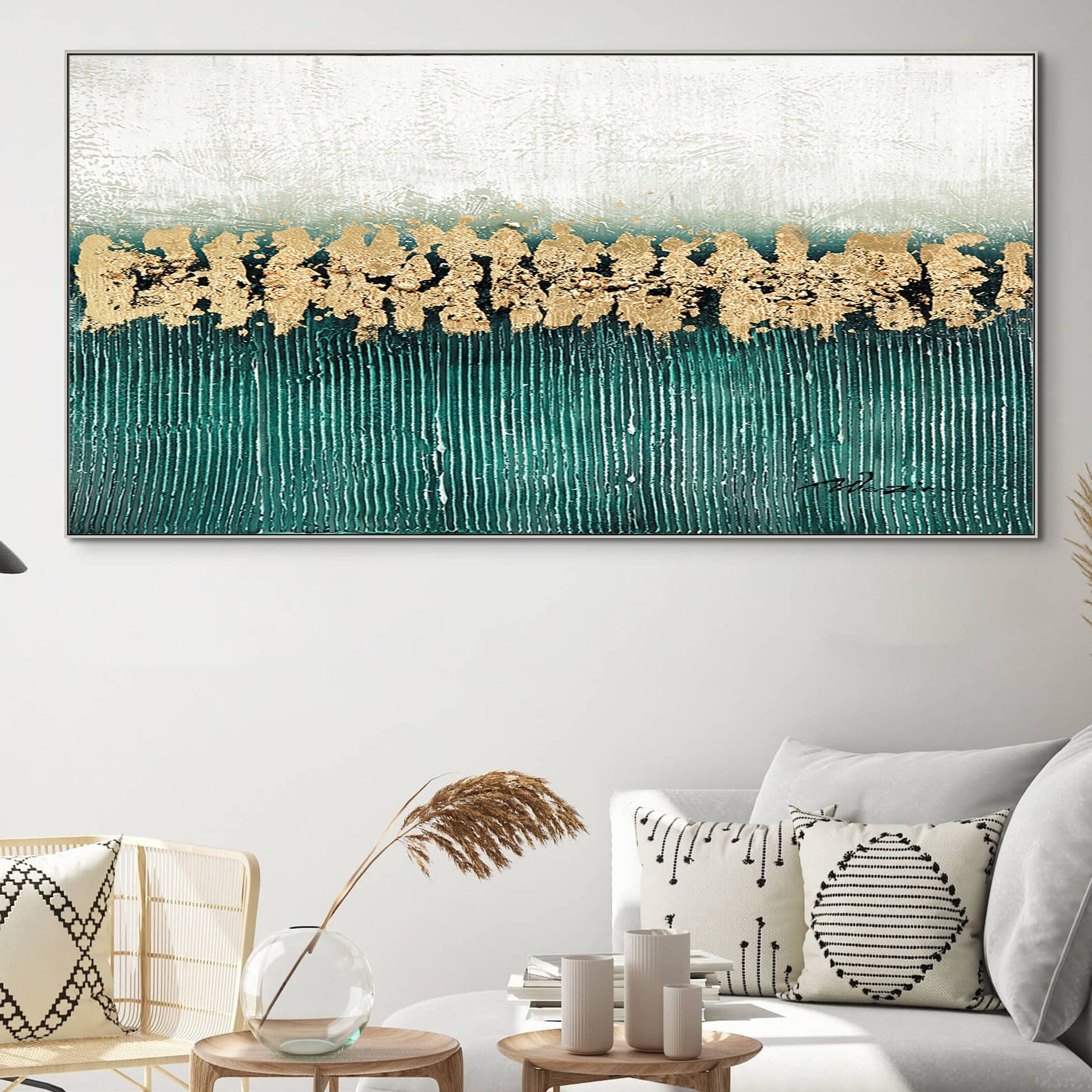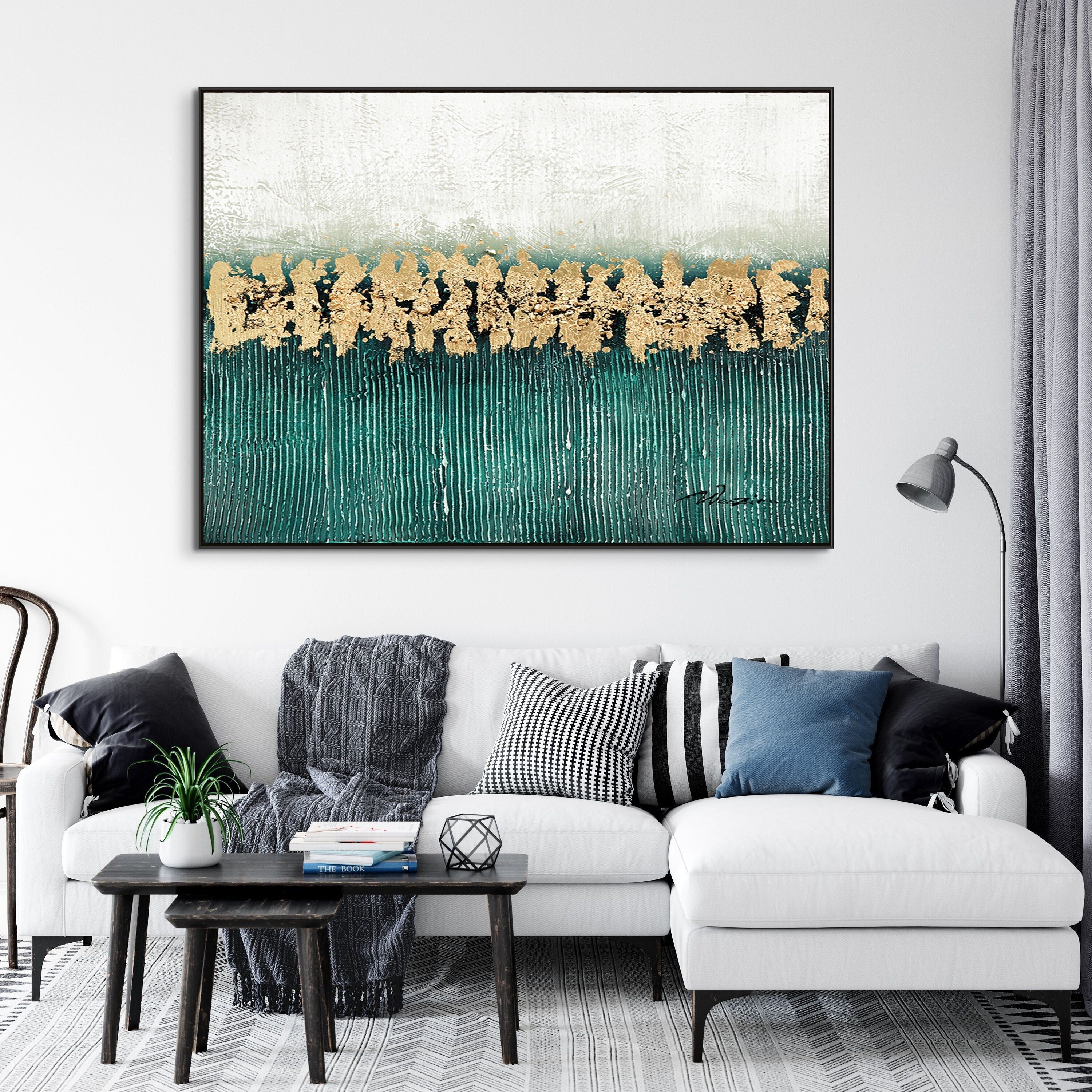 Green Groovy, Thick Textured Abstract Painting with Green and Gold, Living Room Wall Art, Painting on Canvas, Abstract Art, Impasto Painting