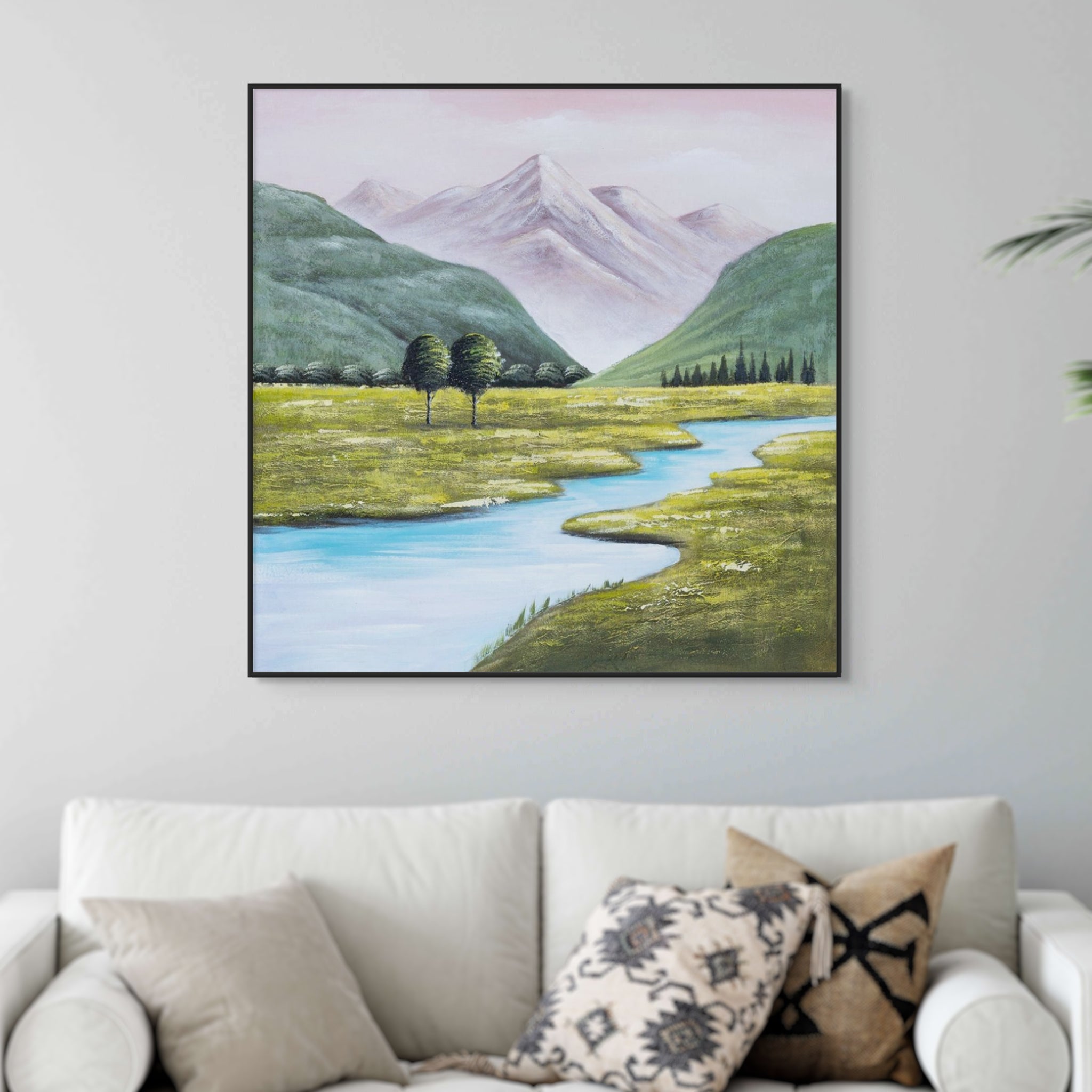 Mountain Creek Impasto Canvas, 31" 3D Textured Wood Framed Landscape Art
