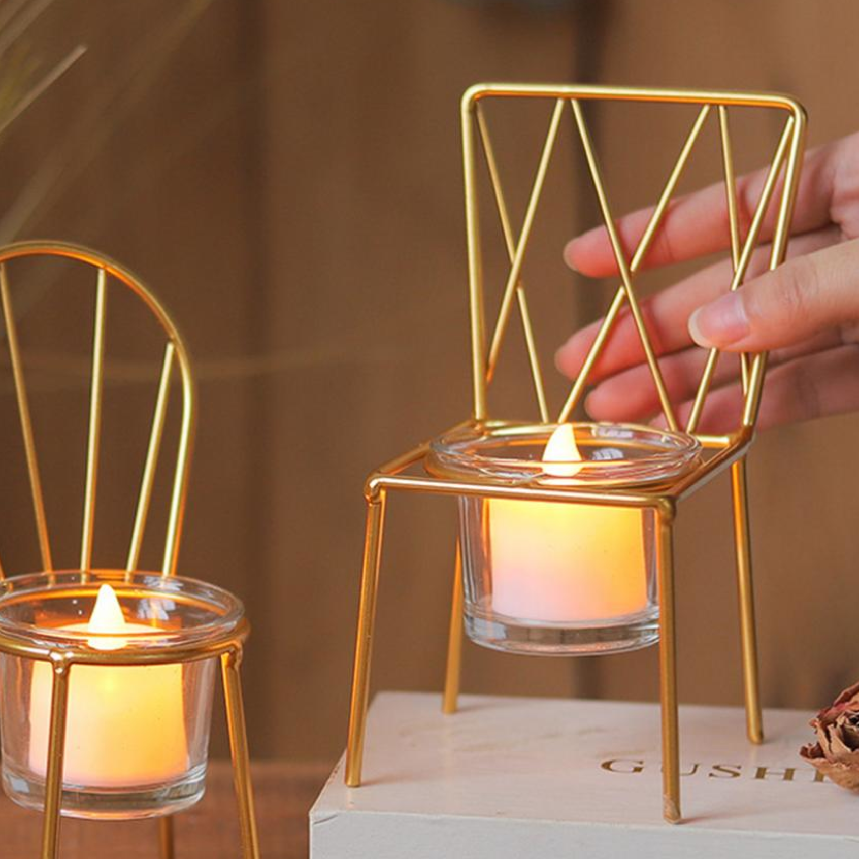 Illuminate your space with golden opulence with this stunning Gold Candle Holder, adorned with an enchanting Golden Elegant Chair design, meticulously crafted to elevate your home decor. Standing at a height of 6 inches (15cm), this Metal Tabletop Centerpiece exudes charm, making it an ideal complement to various decor styles, from modern to farmhouse, boho chic to minimalist, and beyond. This light holder seamlessly blends functionality with elegance, serving not only to emit a warm and inviting glow but also to infuse opulence into your space, whether as an entryway table decor, console table ornament, farmhouse decor, or mantle decoration. Illuminate your surroundings by simply placing a votive candle into the glass candle container, allowing the golden finish of the metal support to shimmer and mesmerize you. This elegant gold decor also serves as a splendid wedding ornament or a thoughtful gift for any occasion. (Candle not included).