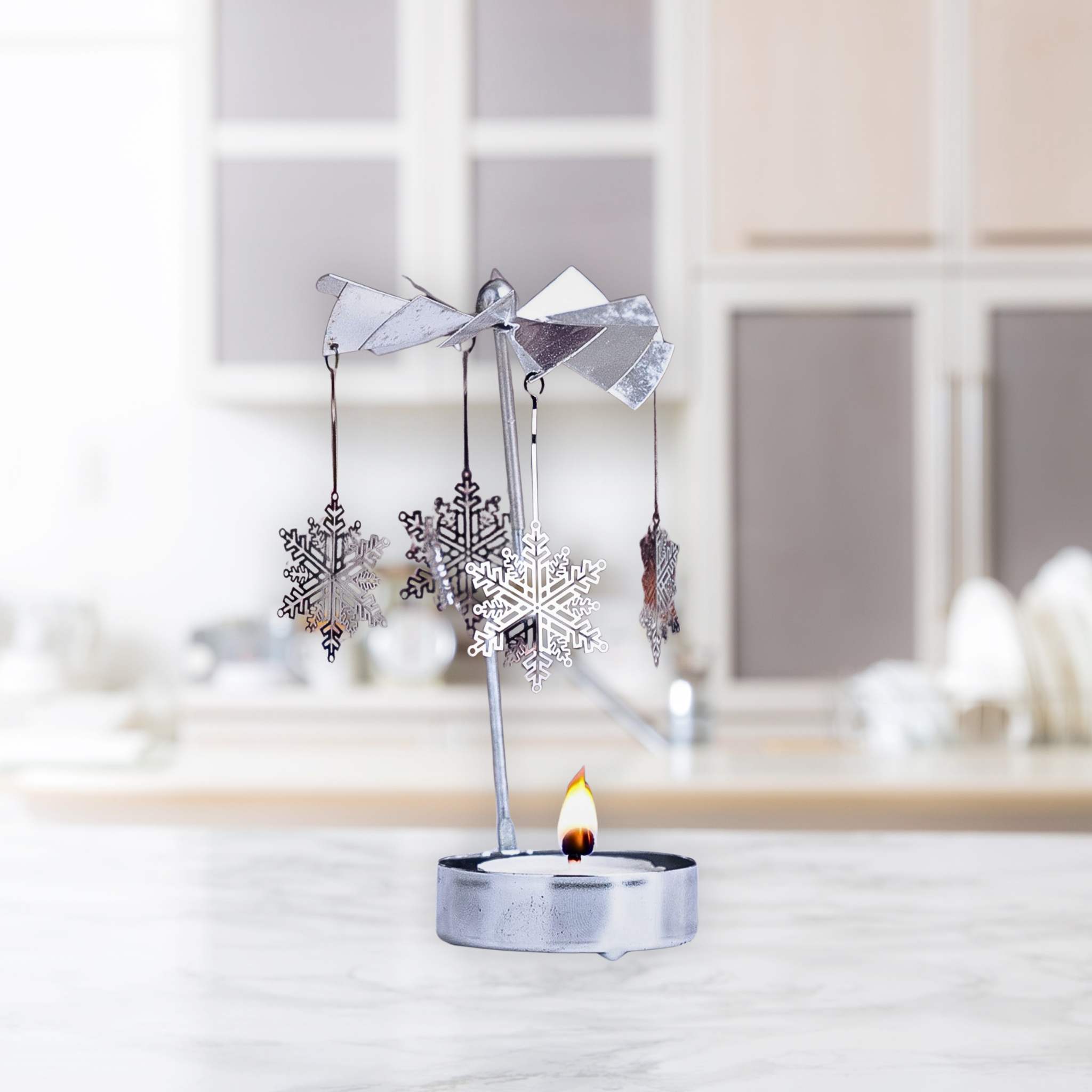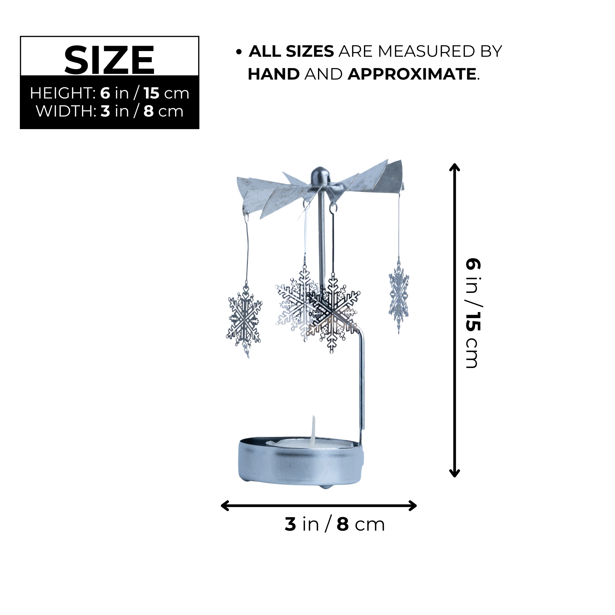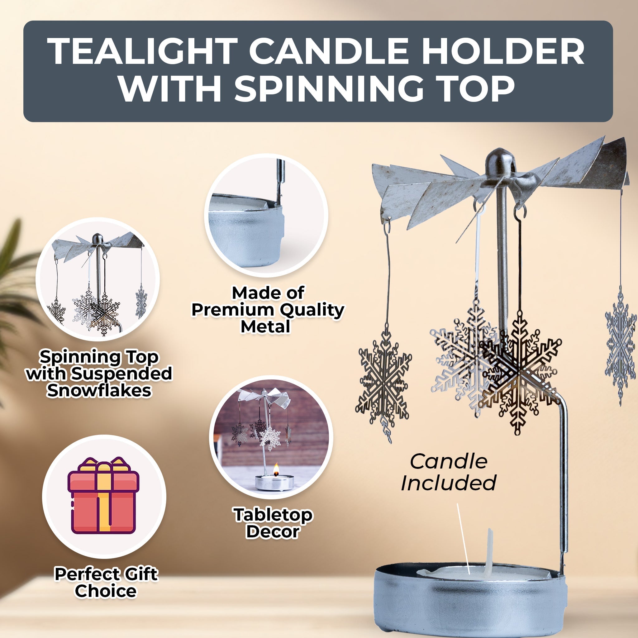Silver Small 6" Metal Candle Holder with 1 Tealight Candle, Spinning Top, Diwali Gifts, Desk Altar Living Room Decor