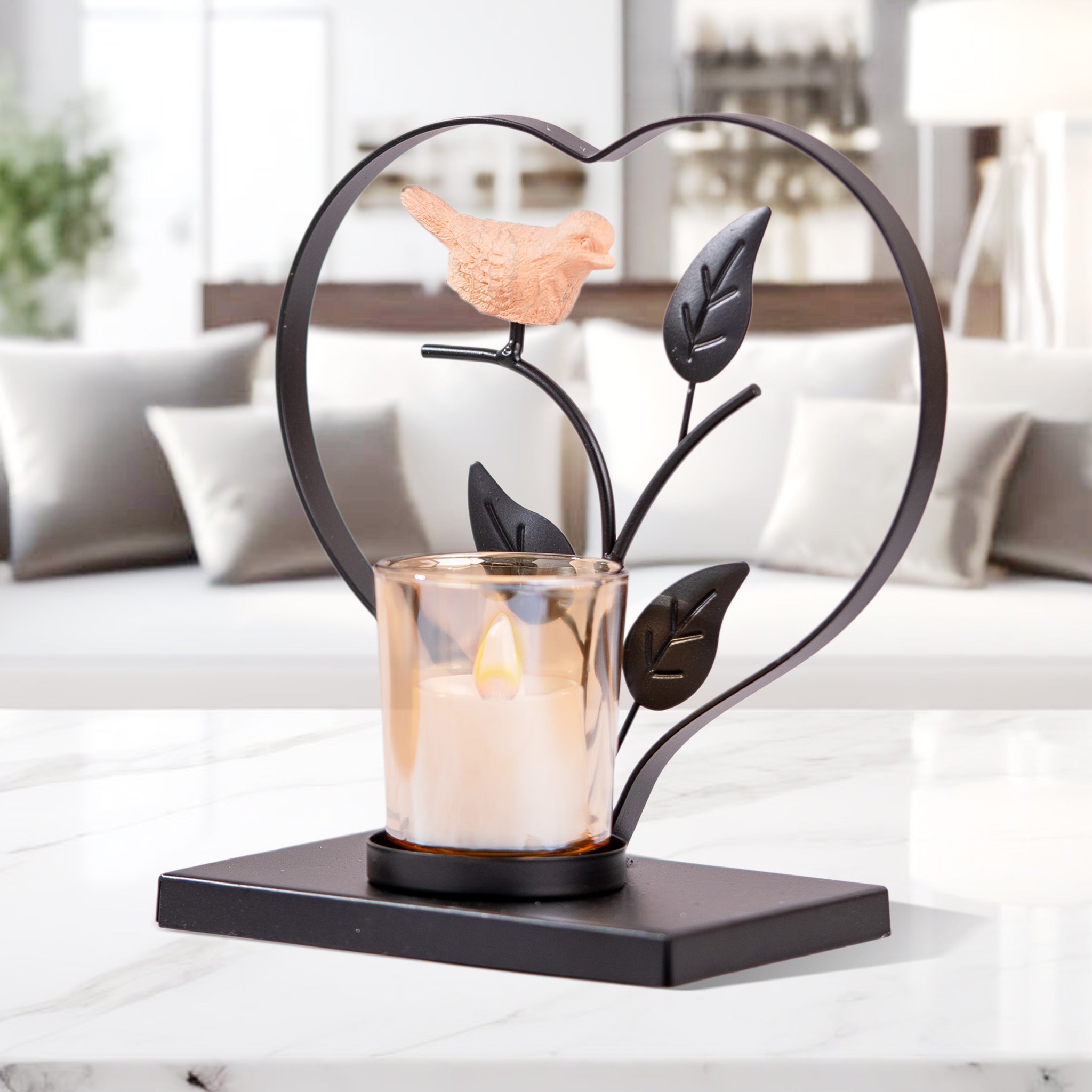 Black Metal Tealight Holder With Bird, 6" Nature Inspired Glass Decor