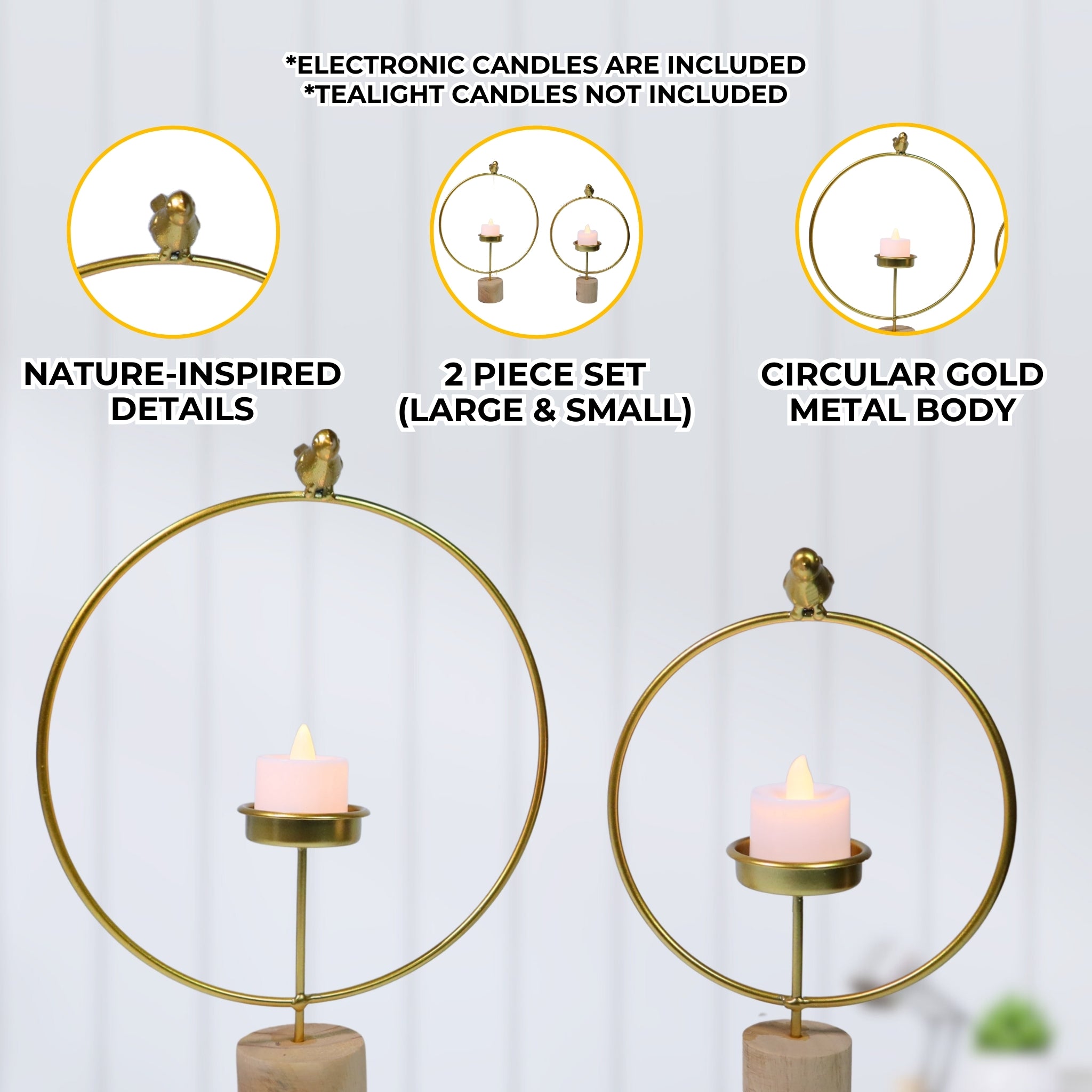 Large and Small Tealight Candle Holder Pair, 11" and 9" Metal Home Decor
