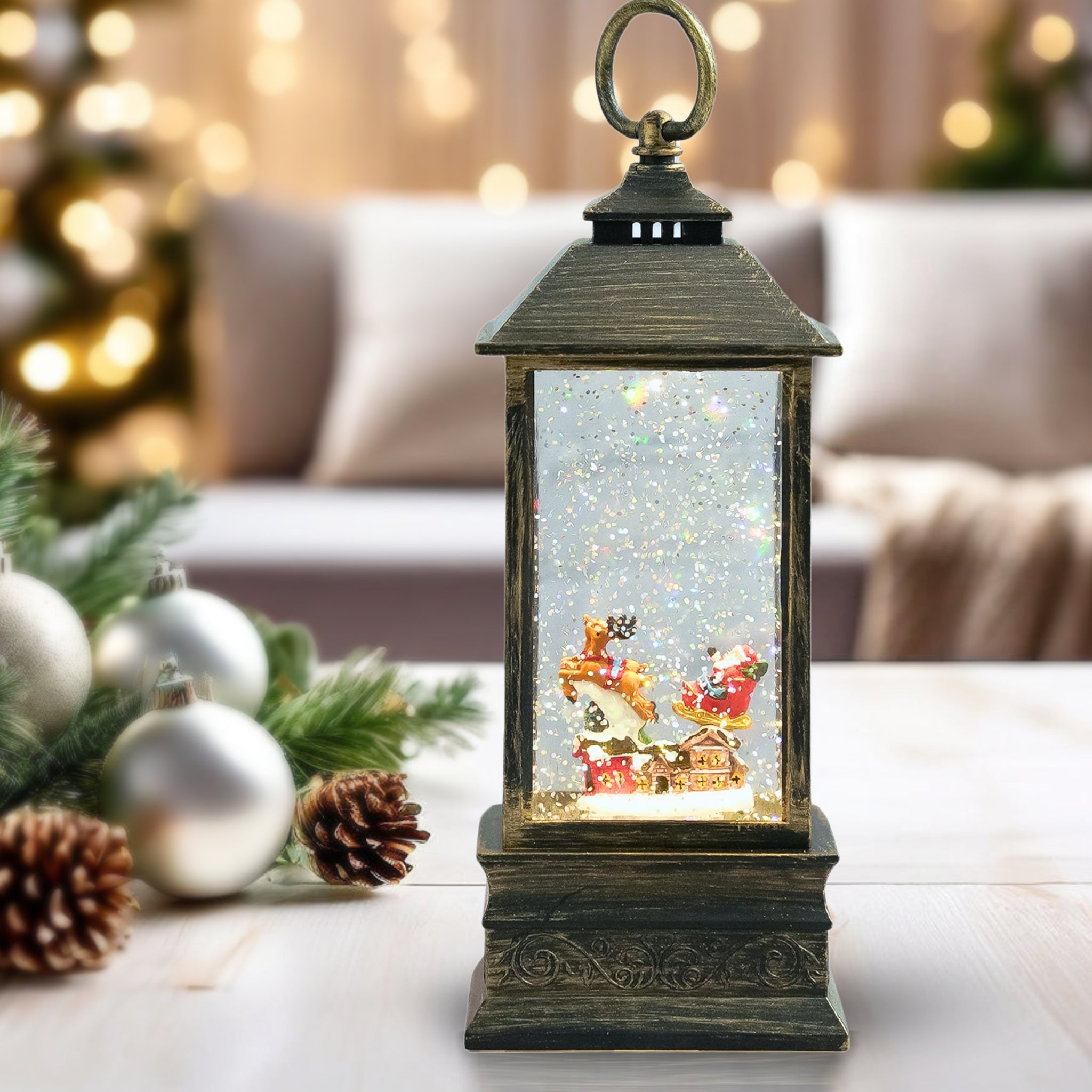 Magical Christmas Snow Globe Lantern, 10" Holiday Decor, Xmas Gift