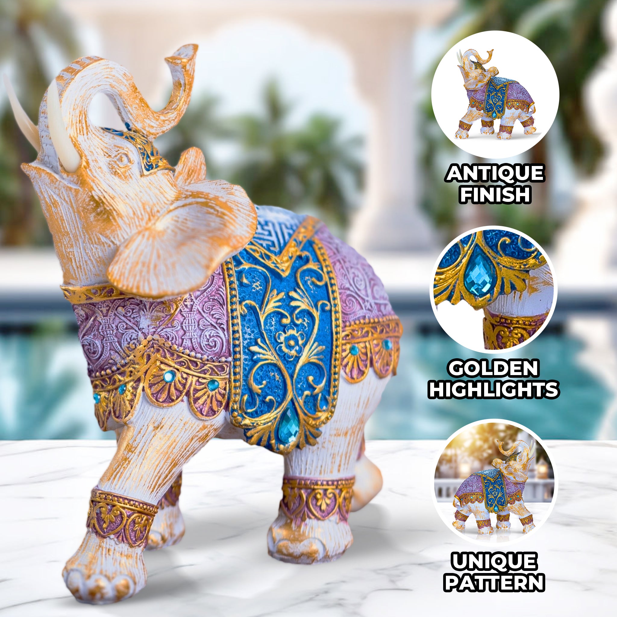 Elephant Statue, 8" Multicolor Animal Figurine, Sculptures, Coffee Table Decor, Ideal Housewarming Gift