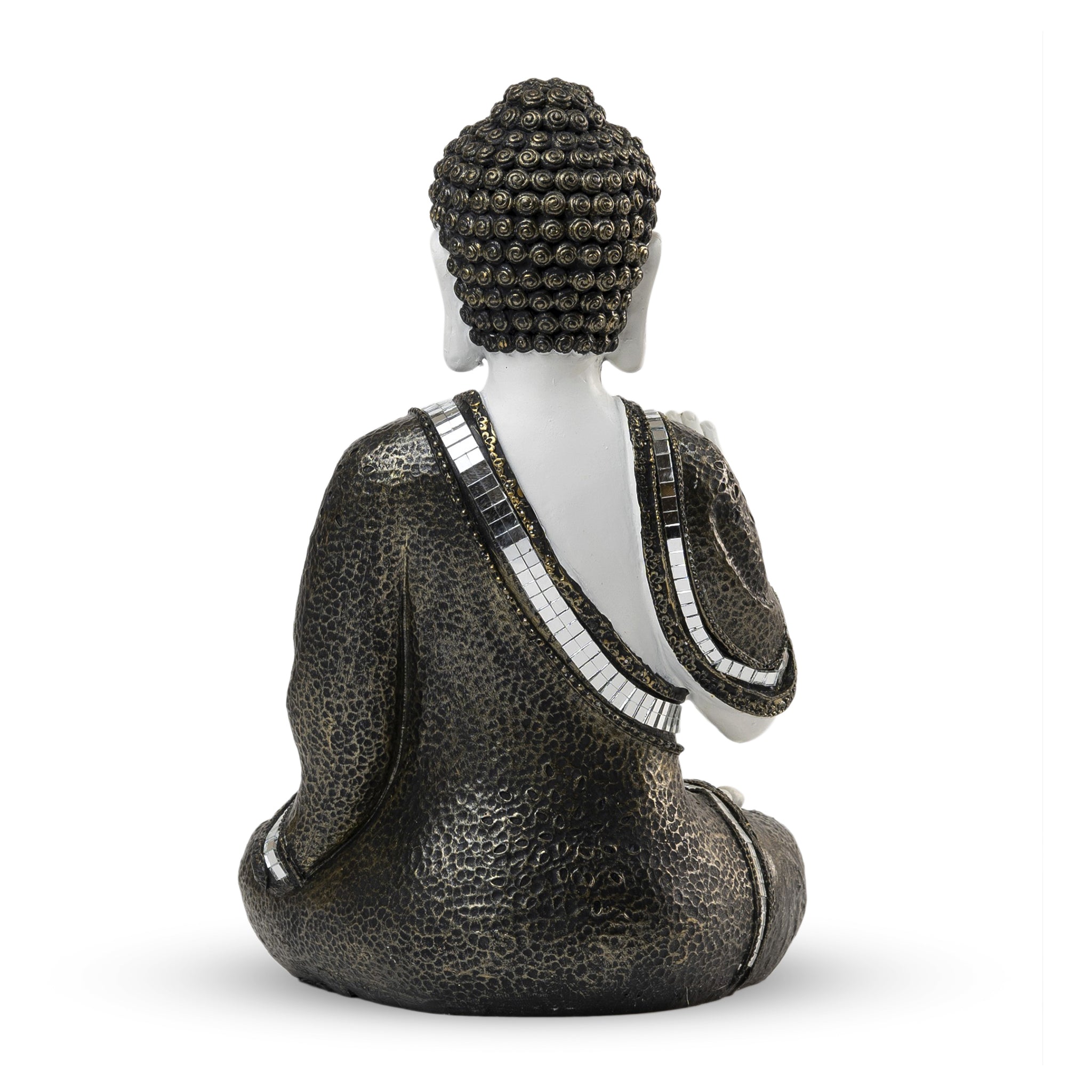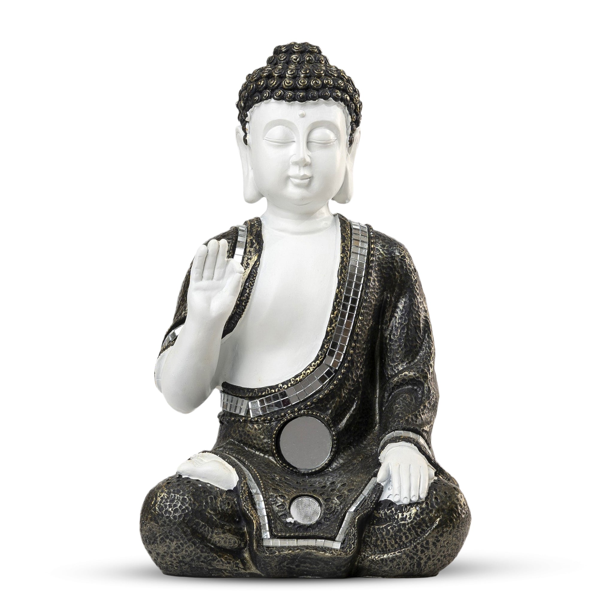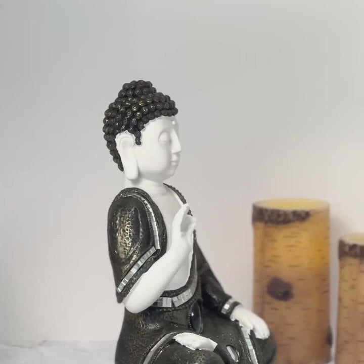 Welcome the serene presence of the Small Polyresin Buddha Statue in antique white. Designed to bring a sense of calm and tranquility, this beautifully crafted Buddha sculpture serves as a perfect tabletop centerpiece for Zen home decor or a peaceful addition to your meditation room essentials. The antique white finish enhances its timeless appeal, making it a versatile accent decor for your living room, bedroom, office, or yoga studio. Made from durable polyresin, this small statue is lightweight yet sturdy, perfect for small spaces. A symbolic gift choice for housewarming and other occasions.