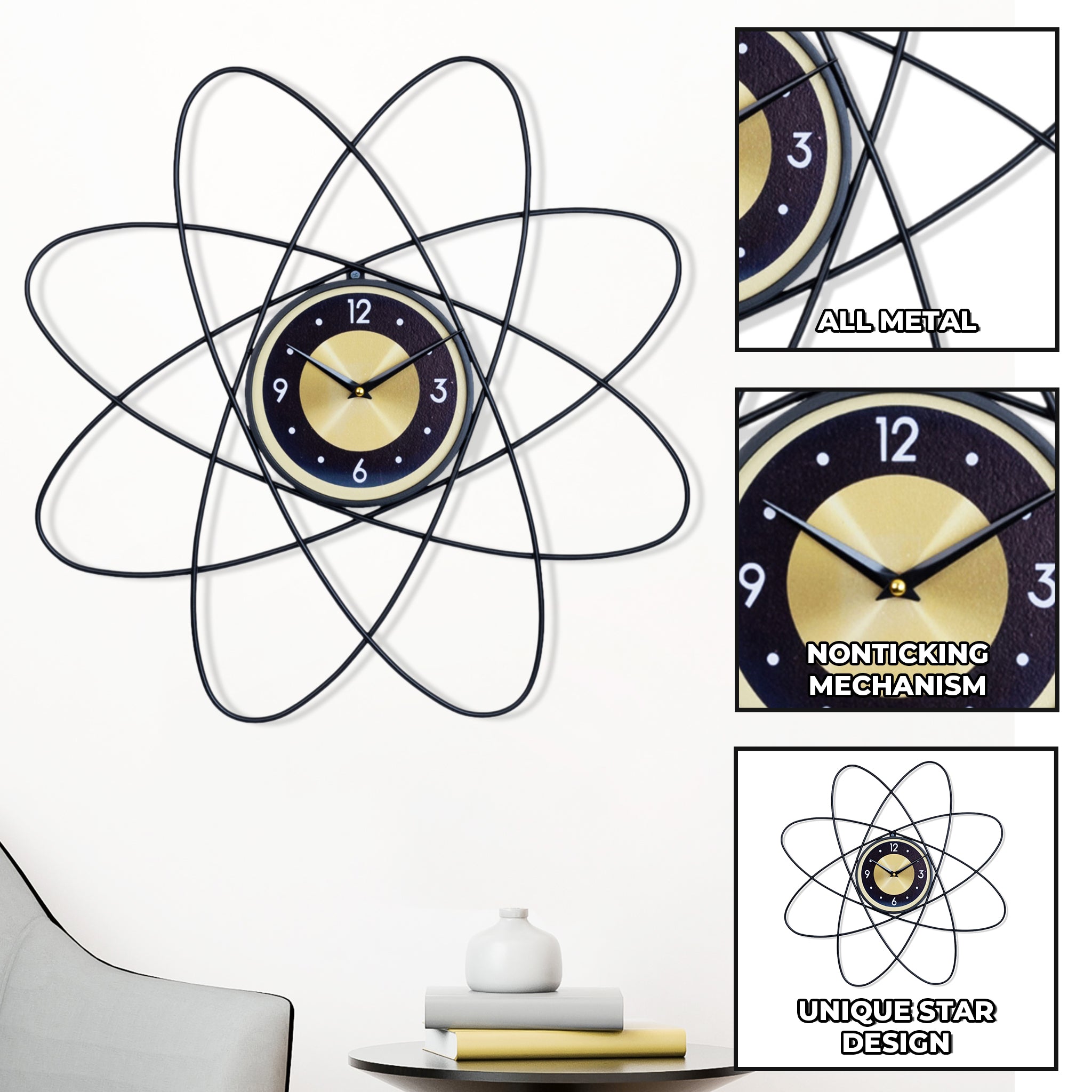 Minimalist Luxury Large Black Yellow Metal Star Decorative Wall Clock, 60 cm Silent Non-Ticking, Living Room Decor Gift