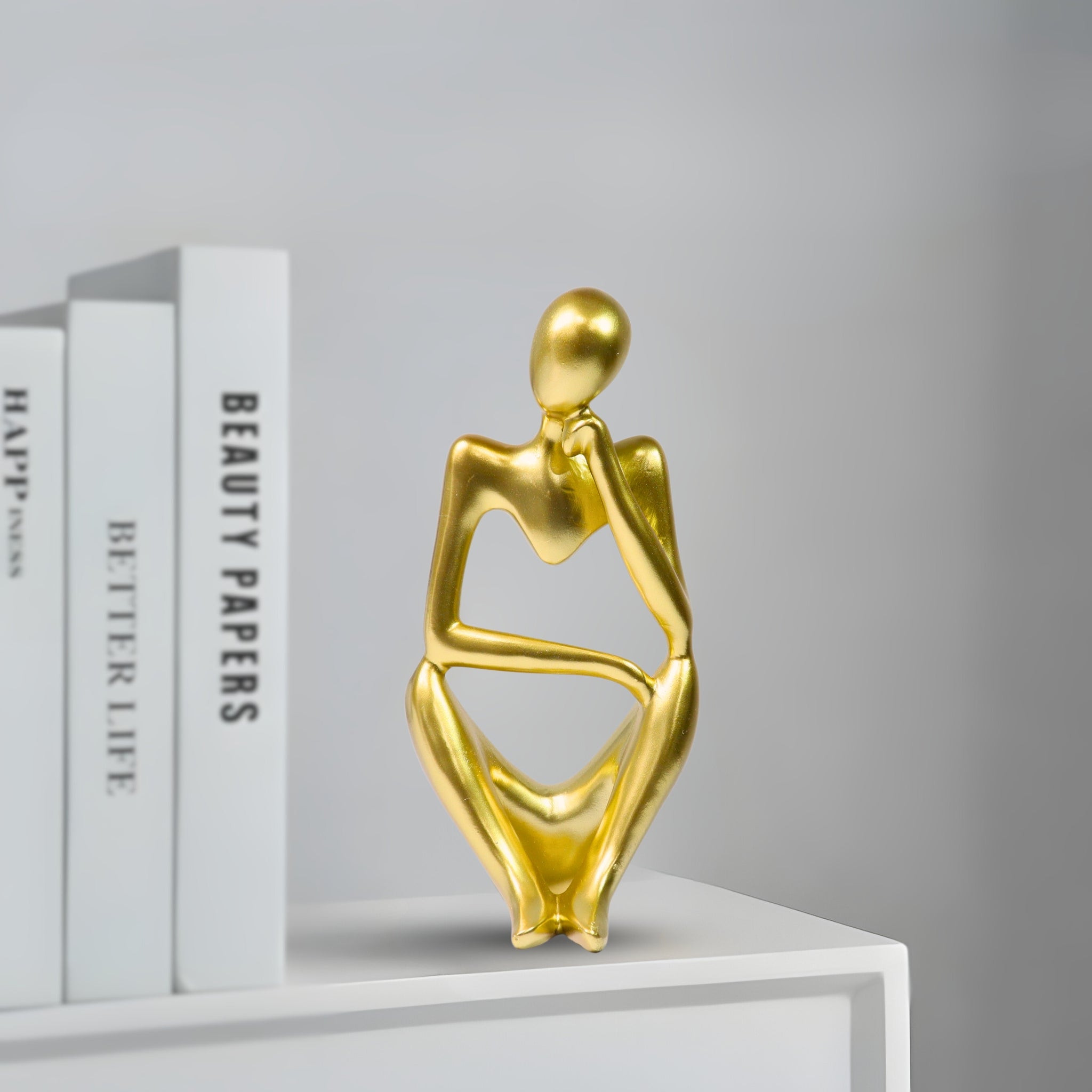 Small Abstract Thinker Statue Decor for Living Room, Gold Decorative Accent for Home, Office 9 inch, 23 cm