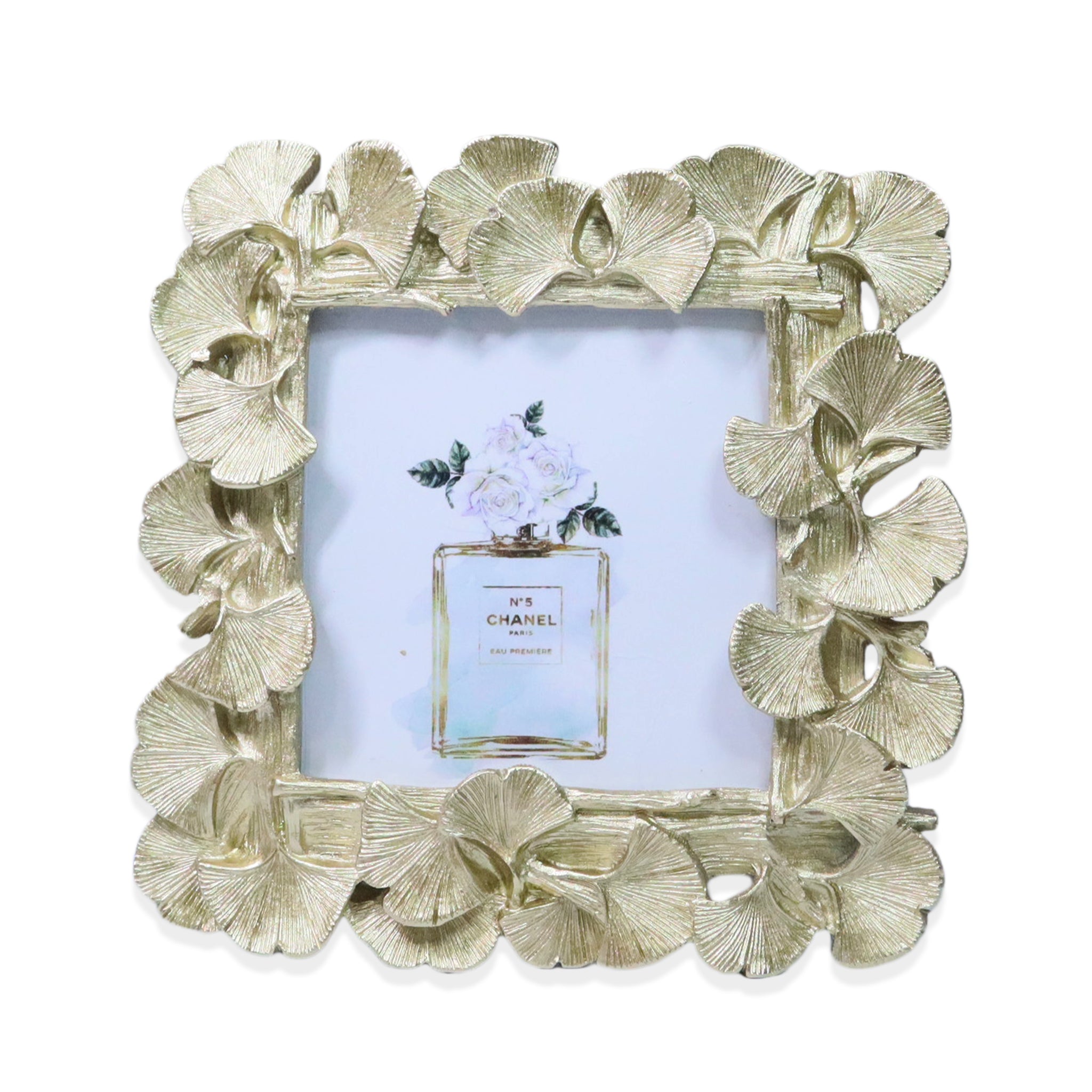 4x4 inch Photo Frame, Golden Ginkgo Leaves Frame Border, 3D Frame, Handmade Decorative Photo Holder 6 inch 16 cm