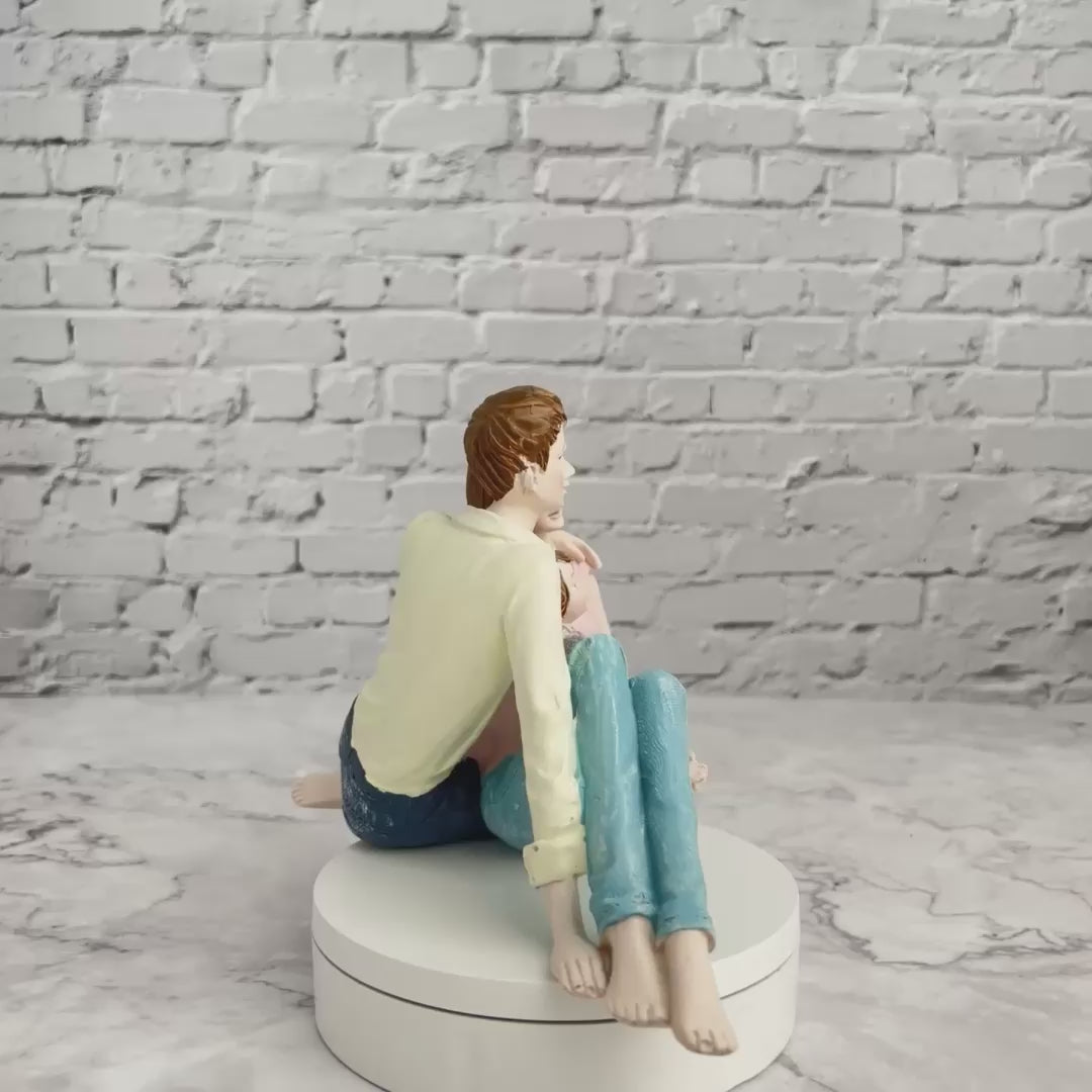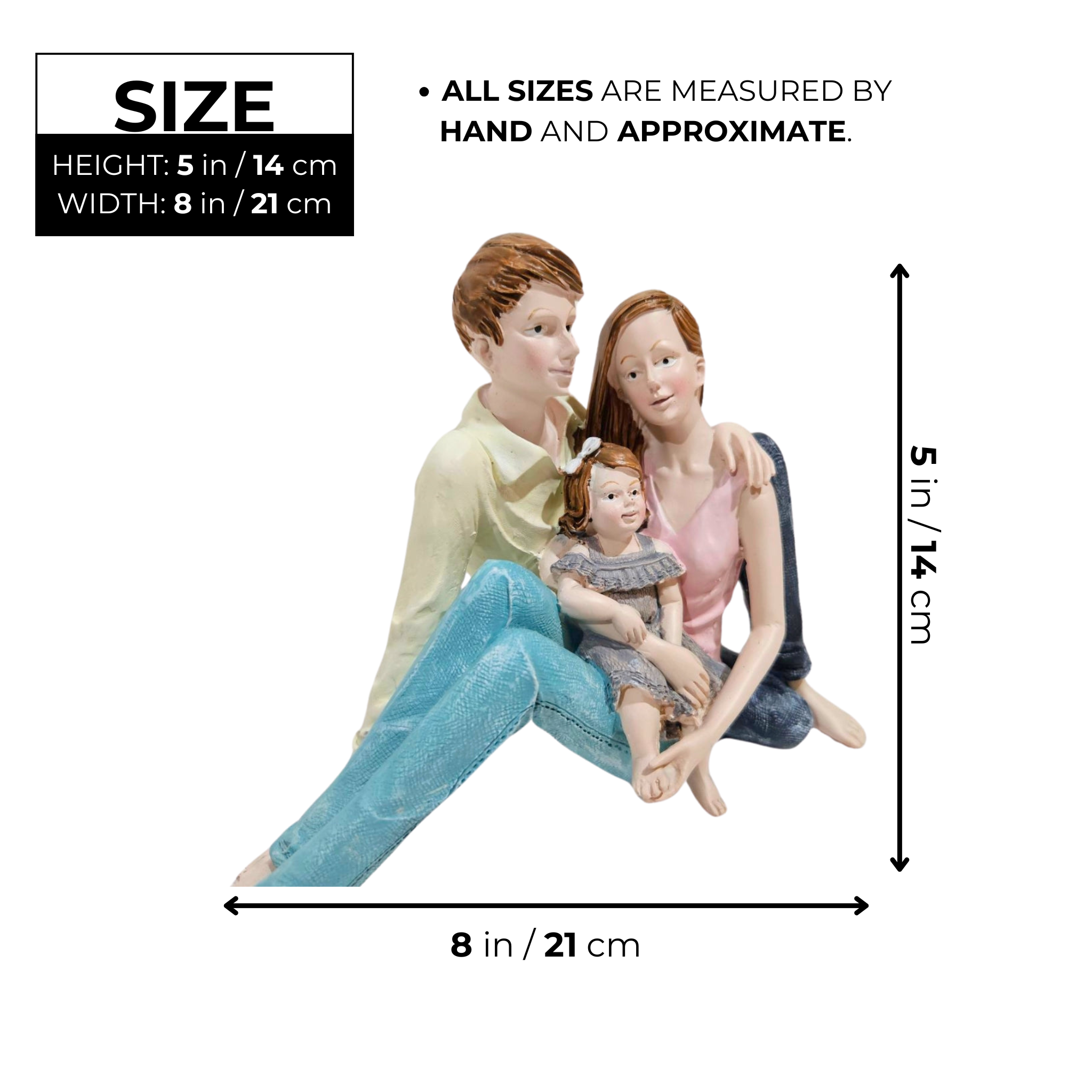 Family Figurine, 5" Father Mother Daughter Statue Modern Tabletop Decor