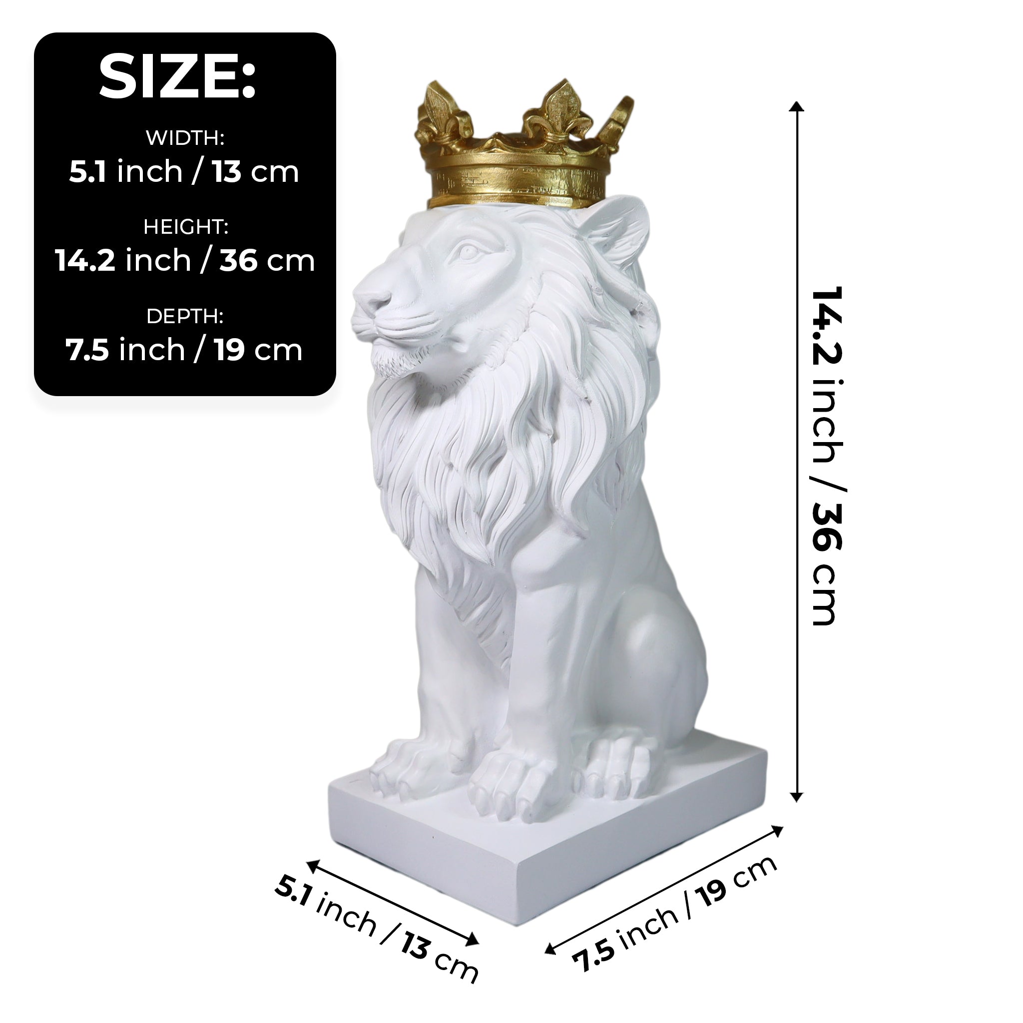 White Lion King with Golden Crown, Statue of a Lion, Table Centerpiece, Home or Office Decor, 36 cm, 24 inch, Unique Gift