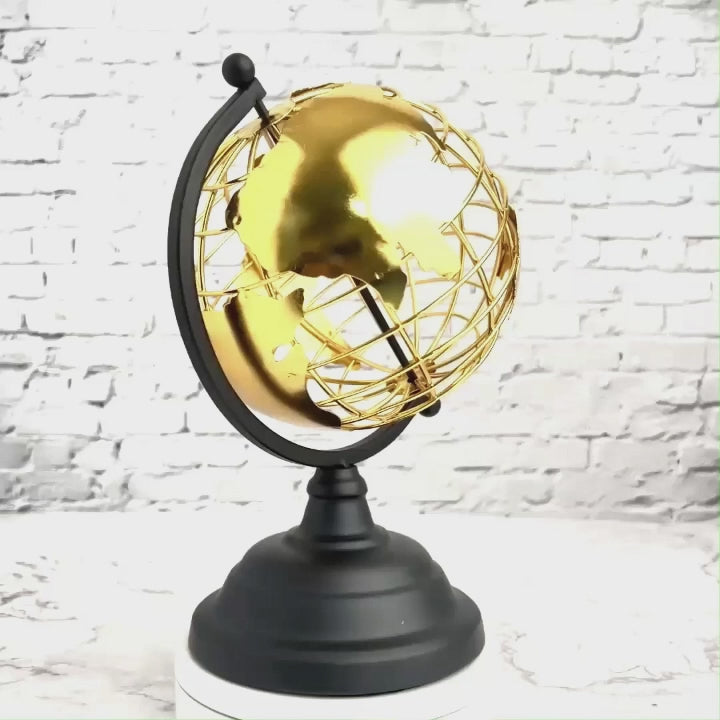 Golden Antique Globe, 10" Metal Decor Accent Tabletop Centerpiece