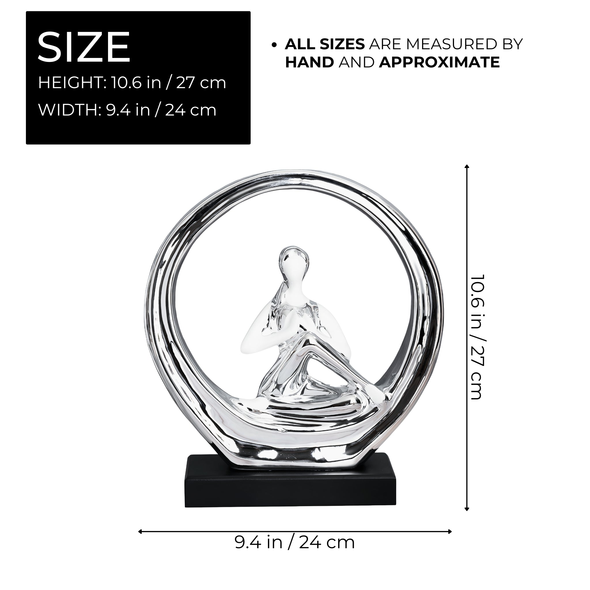 Elevate your space with this elegant white and silver ceramic yoga girl statue, capturing the perfect yoga pose. A beautiful blend of health, wellness, and aesthetic elegance, it's ideal as meditation room decor or a thoughtful fitness gift. Perfect for women over 50, after-surgery gifts, or as a unique housewarming present, this statue embodies peace and inspiration. Whether you're adding a touch of yoga decor or seeking a harmonious atmosphere, this versatile piece is a great gift for men and women of all ages and occasions. A refined home accent for health, fitness, and mindfulness.