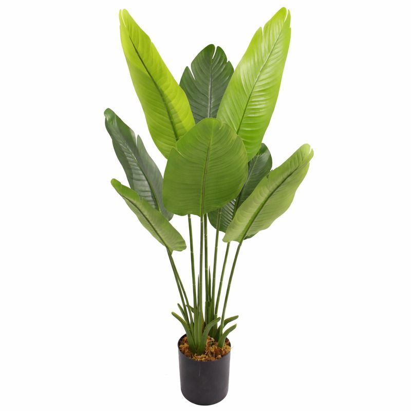 Bring lush, tropical vibes to any space with this Large Artificial Bird of Paradise Tree, standing 45 inches tall. Crafted with lifelike detail and faux botanical leaves, this nearly natural fake plant features a realistic green banana tree trunk, housed in a stable cement base pot. Whether you're refreshing your indoor room decor or enhancing your outdoor patio or front porch, this decorative potted plant offers the beauty of nature without the upkeep. Perfect for home, office, or garden spaces, this realistic faux tree instantly brightens your surroundings - no watering or sunlight needed! Simple assembly needed. NOTE: The outer decorative pots shown in the images are sold separately - only the cement base is included for stability.