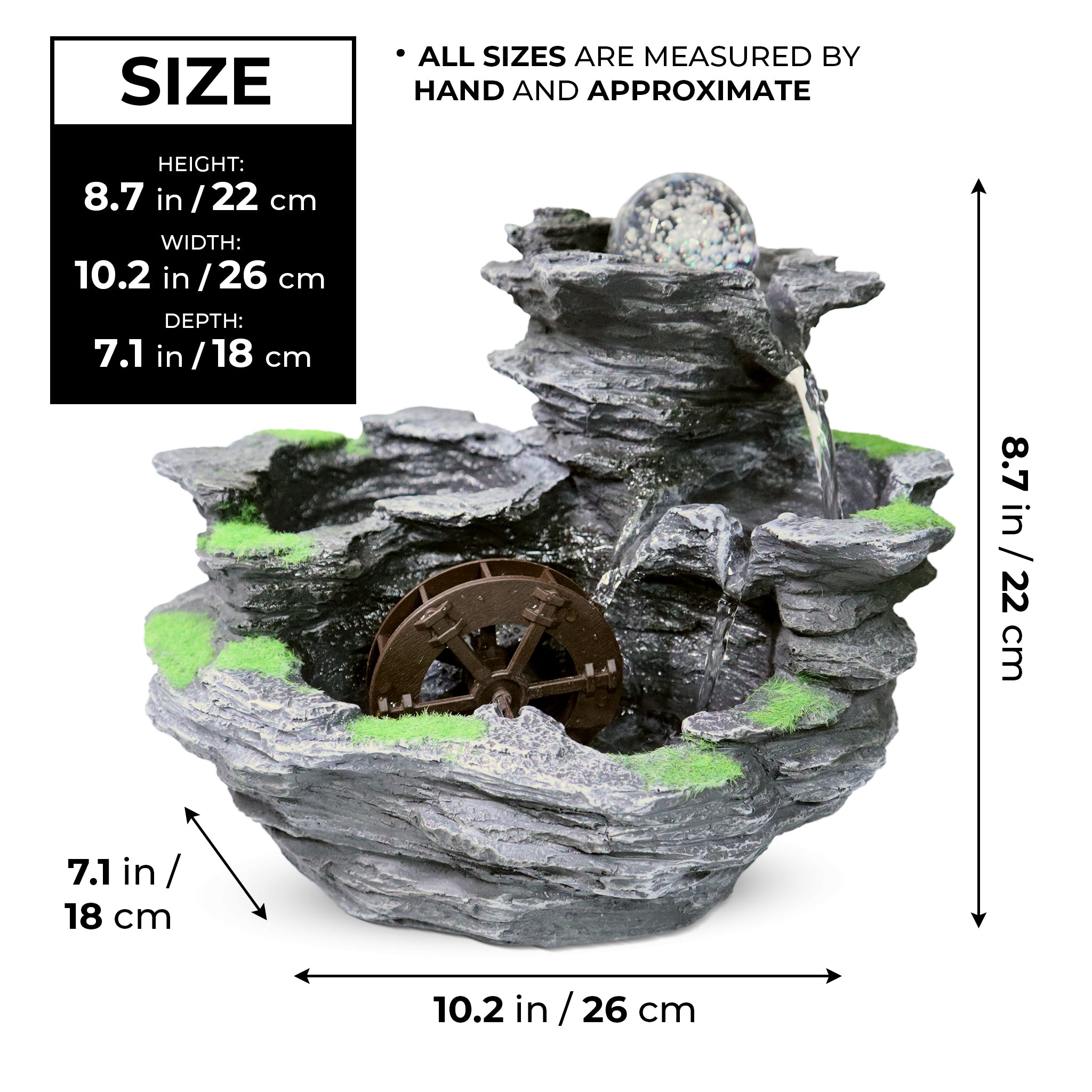 Escape the hustle and bustle of everyday life. We all crave a moment of peace in our busy lives. This Indoor Water Fountain isn't just a decoration - it's your own personal zen. This tabletop fountain is packed with features to enhance your space. With an adjustable pump for gentle water flow, a built-in light for ambient illumination, and a captivating revolving crystal, the zen water fountain creates serenity in your space. The polyresin build in classic black is weatherproof and waterproof, ensuring enduring functionality of the tabletop water fountain. This indoor waterfall is 10 inch wide (about 26 cm), making it an ideal desktop water fountain. Create a calming vibe to your living room, bedroom, or workspace as this indoor tiered water fountain with lights can fit in anywhere. Setting this rock style fountain up is quick and easy – just plug it in, add water, and enjoy the tranquil sound of flowing water. Follow the simple care tips to maintain the oriental beauty and functionality of this indoor water feature.