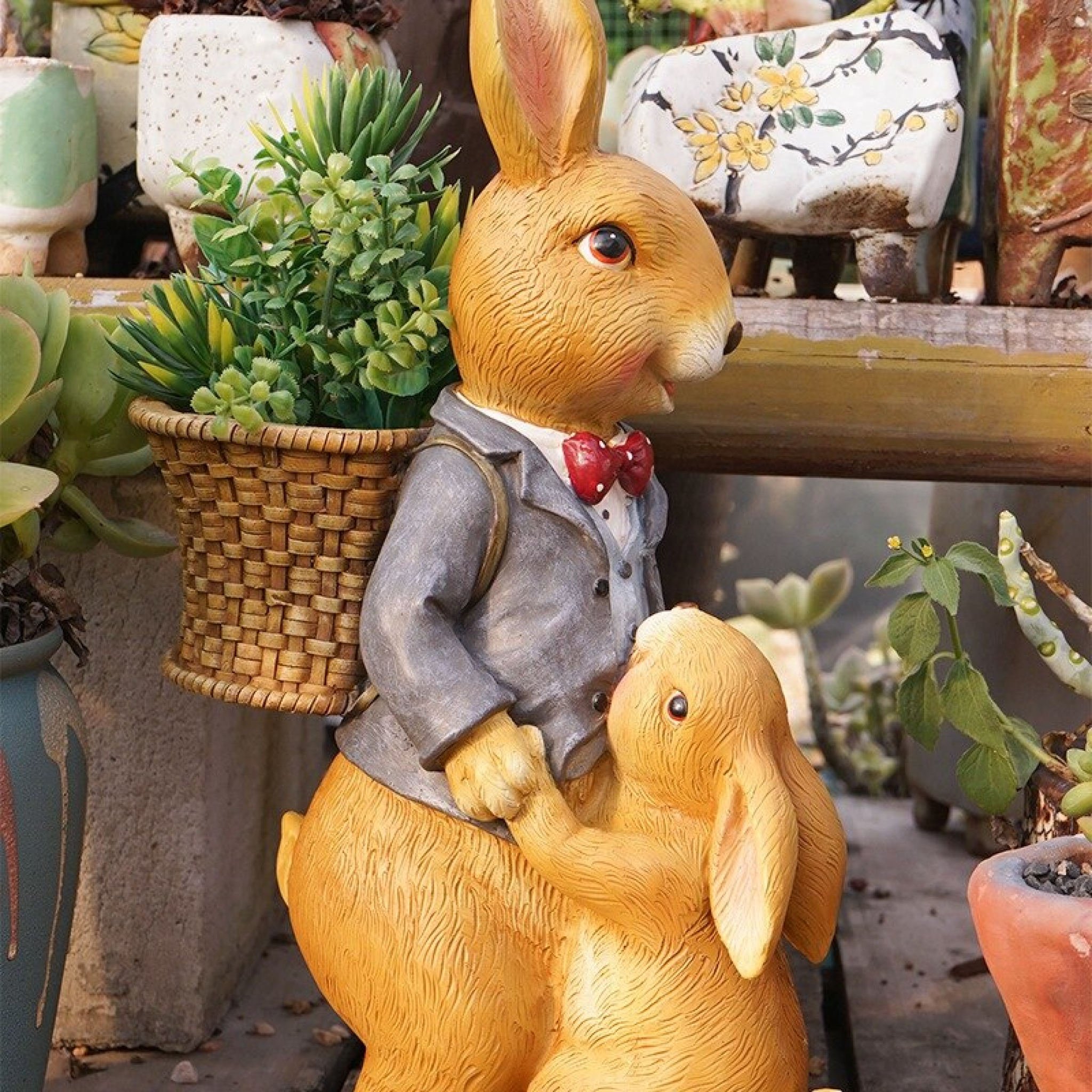 Add charm and a touch of whimsy to your outdoor space with the Family Bunny Garden Statue. Crafted with durable, weather-resistant materials, this adorable bunny family sculpture is perfect for enhancing your garden, patio, or yard. Whether nestled among your flowers or placed as a standalone decoration, these delightful bunnies bring a sense of warmth and nature to your outdoor decor. This is one bunny family that will gladly greet visitors to your beautifully adorned yard. It's constructed of resin and comes in a variety of bright hues. This quartet can be assembled to tell a pleasant story about cheeky baby bunnies following their parents amid your herbs and flower planters.