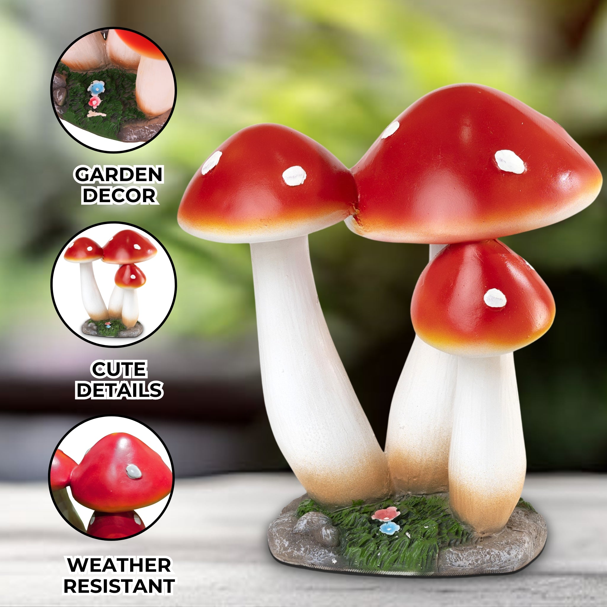 Large Outdoor Decor, Mushroom Sculpture, Red Polyresin 15 inch 39 cm