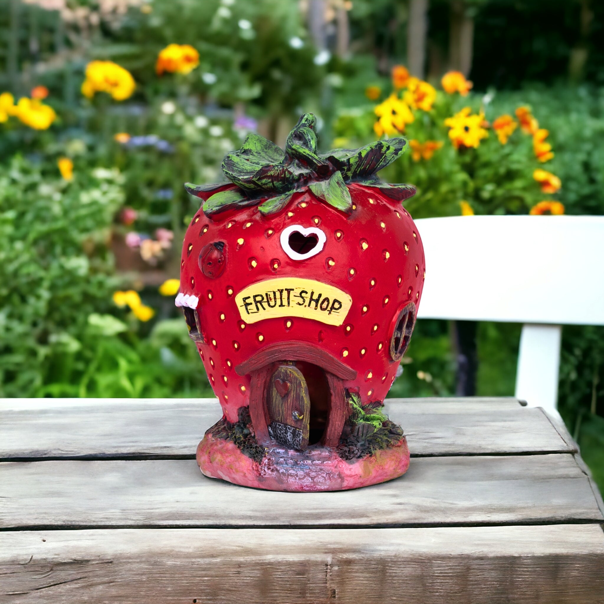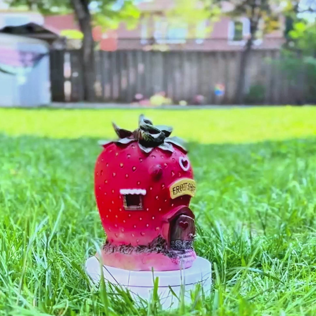 Polyresin Strawberry Solar Statue, 16" Fairy Garden Accessory Outdoor Decor