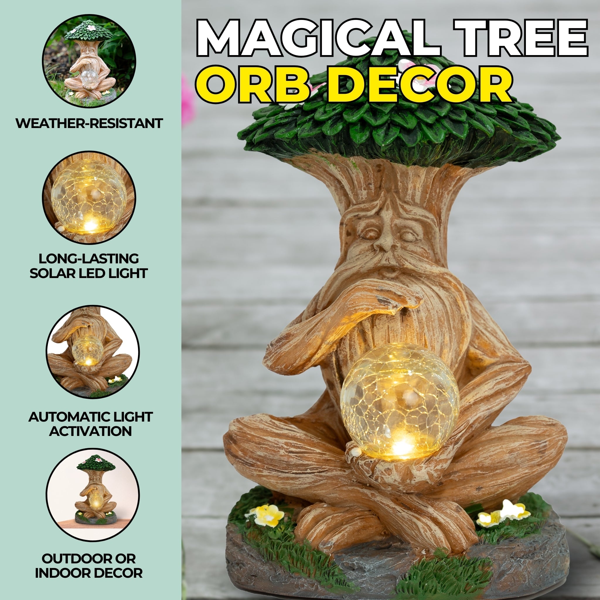 Tree Orb Solar Light Statue, 11" Polyresin Fairy Garden Outdoor Decor Gift