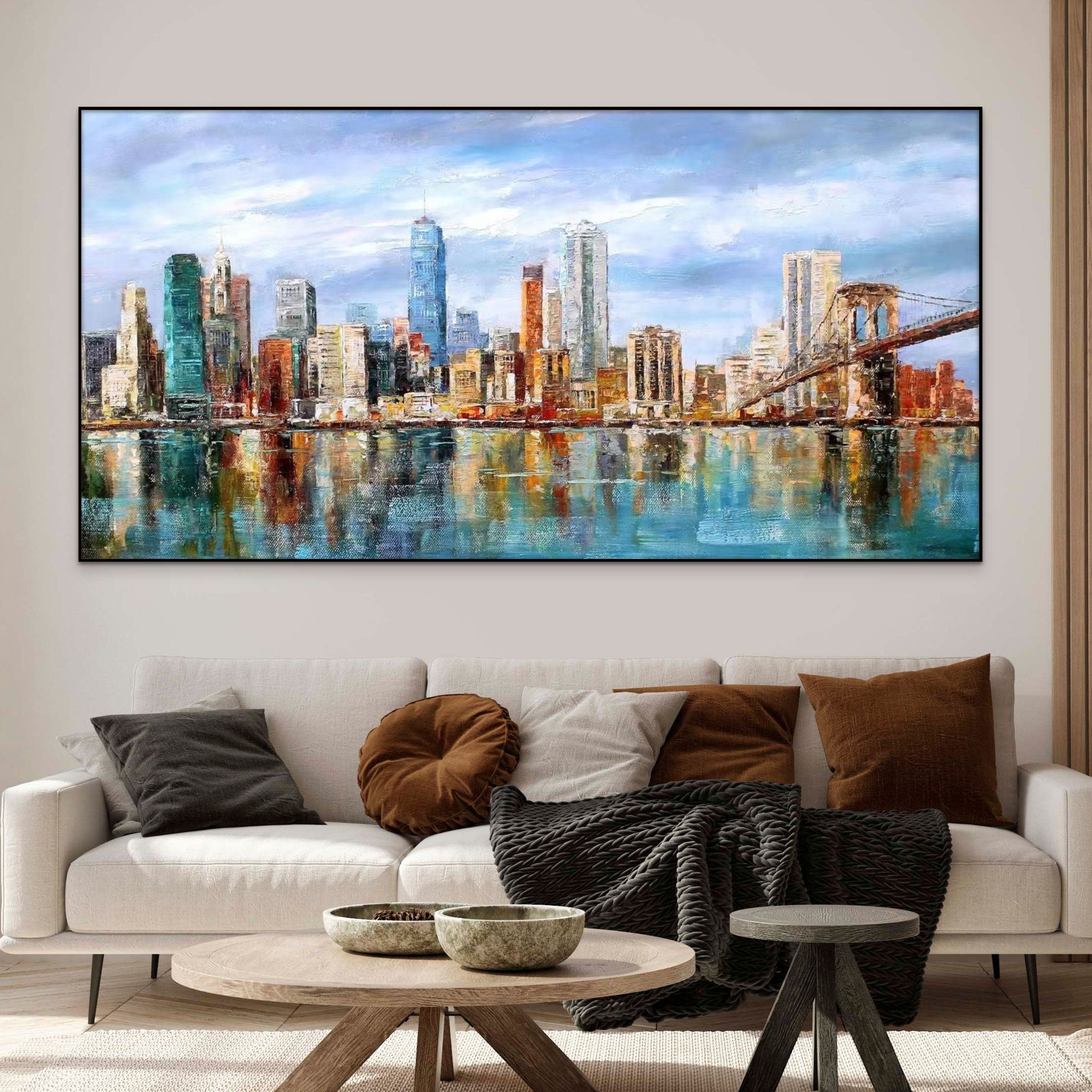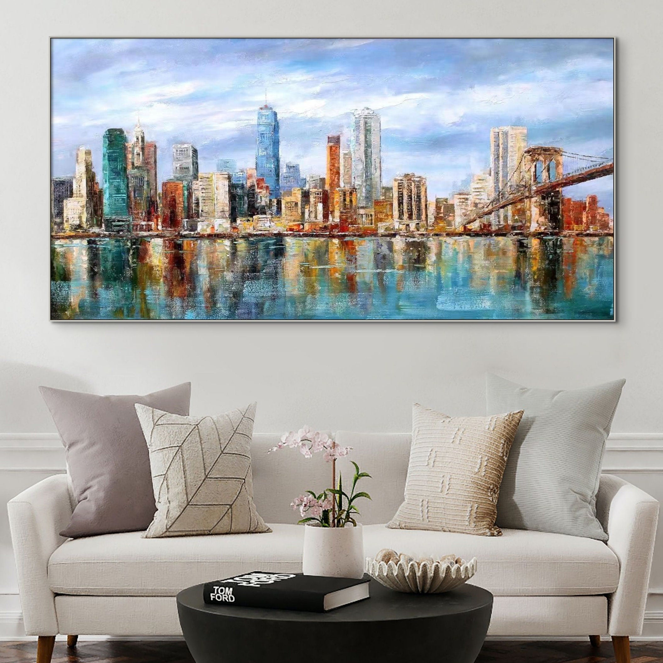 Crafted with the utmost care and attention to detail, this city painting is a testament to contemporary art. The canvas is meticulously hand-painted using high-quality acrylics, ensuring rich texture and depth. Owning this piece of New York Wall Art is like holding a slice of the city's soul. The abstract city painting is not just decor; it's an experience, a minimalist wall painting that speaks volumes through its understated complexity.