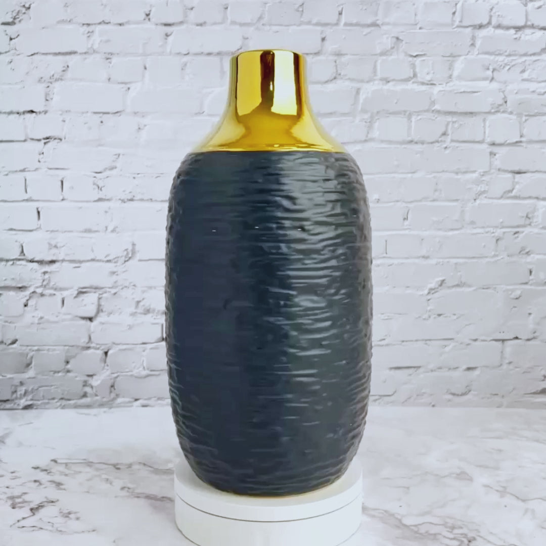 Black Ceramic Minimalist Vase With Golden Rim, 12" Modern Flower Vase