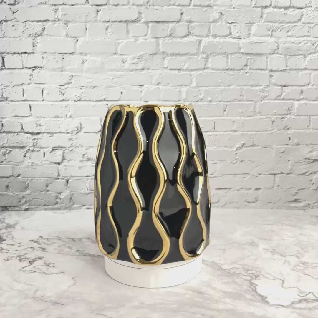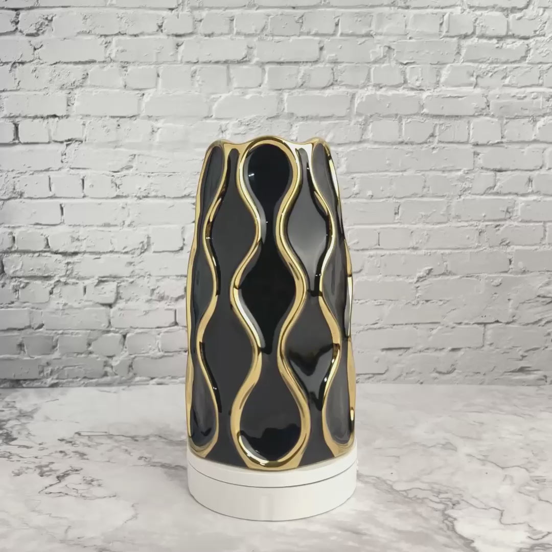 Black Ceramic Vase With Golden Trim , 10" and 8" Table Vase Centerpiece