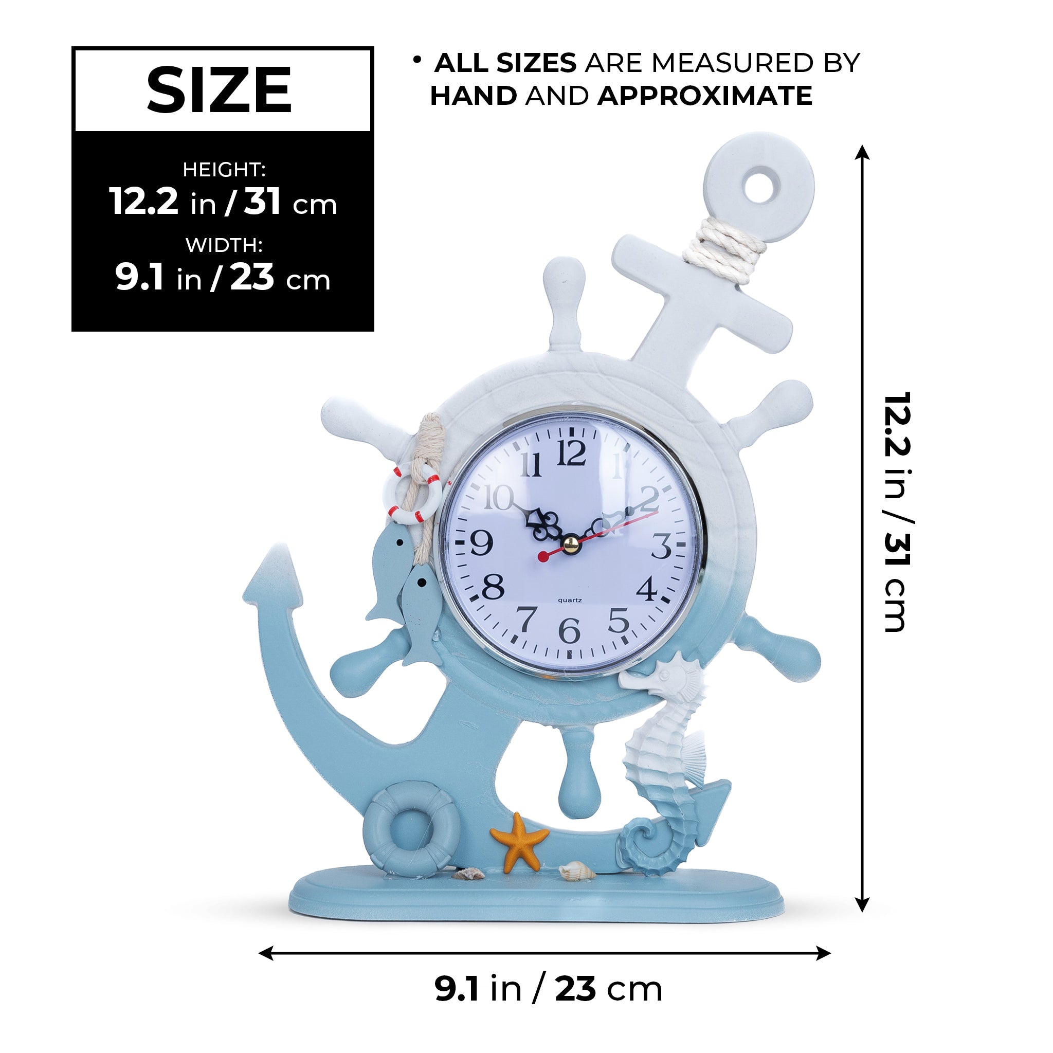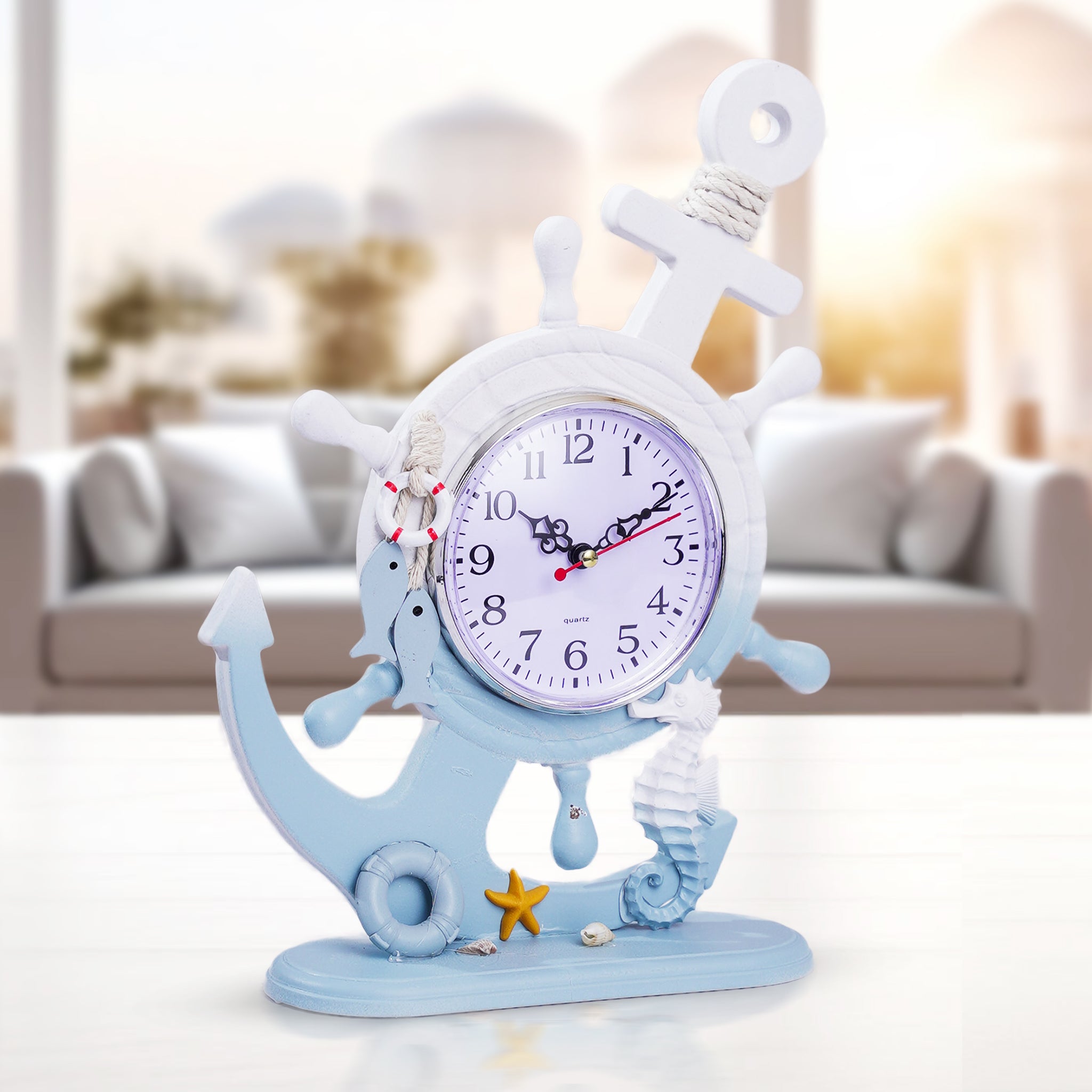 Wooden Anchor with Clock Decorative Tabletop Statue, Marine Decor, Cottage, Office, Bedroom, Living Room, Home Decoration, Gift