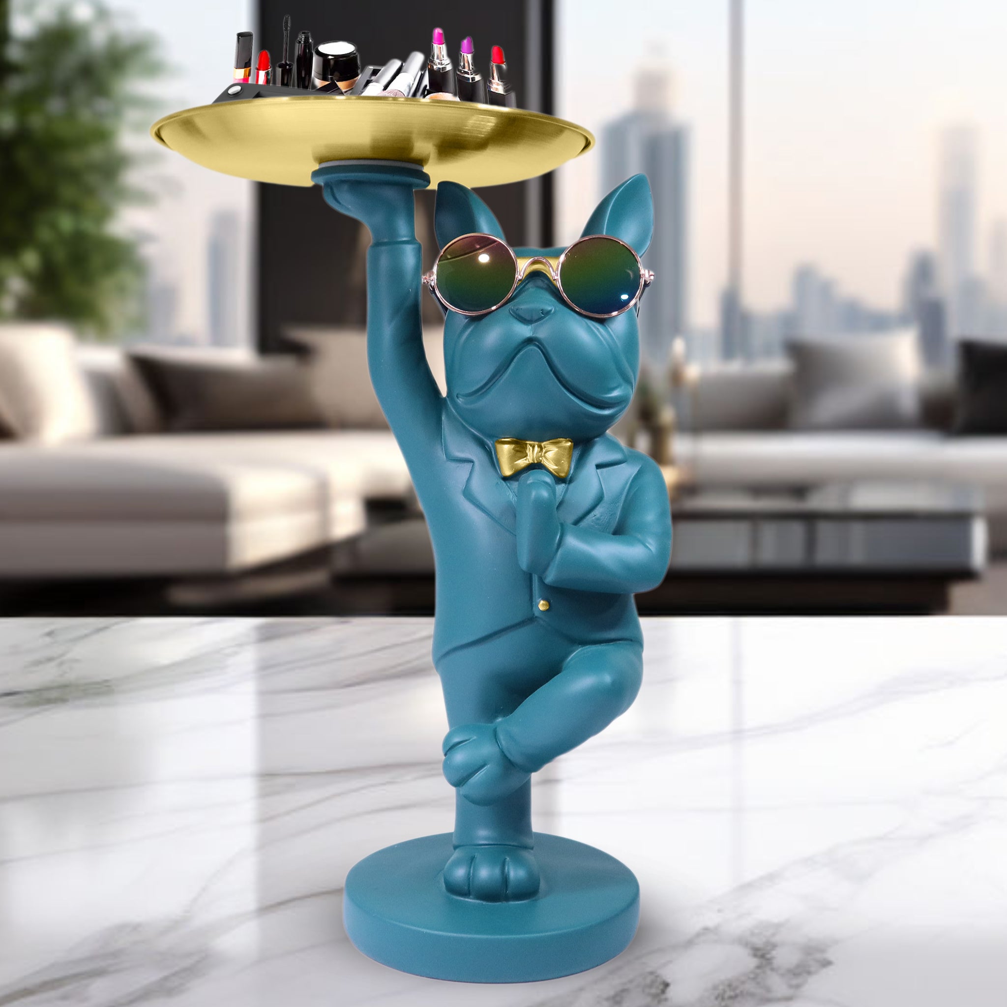 Ready to get organized? This Cool Dog Storage Organizer is here to lend a paw! With its laid-back hippie dog design, complete with cool sunglasses, this polyresin dog statue combines cuteness with functionality. The dog sculpture features a metal tray perfect for organizing small items like keys, accessories, coins, and toys. With its stable base, you can trust that the 12 inch (31 cm) organizer tray won't tip over, even when filled. The unique blue color of the dog statuary adds a pop of color to your space; a relaxing color that's pleasing to the eyes. Not only is this pug table organizer cute, but it's also a practical decorative accent that can be used as a nifty makeup organizer, jewelry organizer, skincare organizer, or cosmetic organizer. It's also a great housewarming gift or present for kids and teens, teaching them the importance of staying organized in a fun way.
