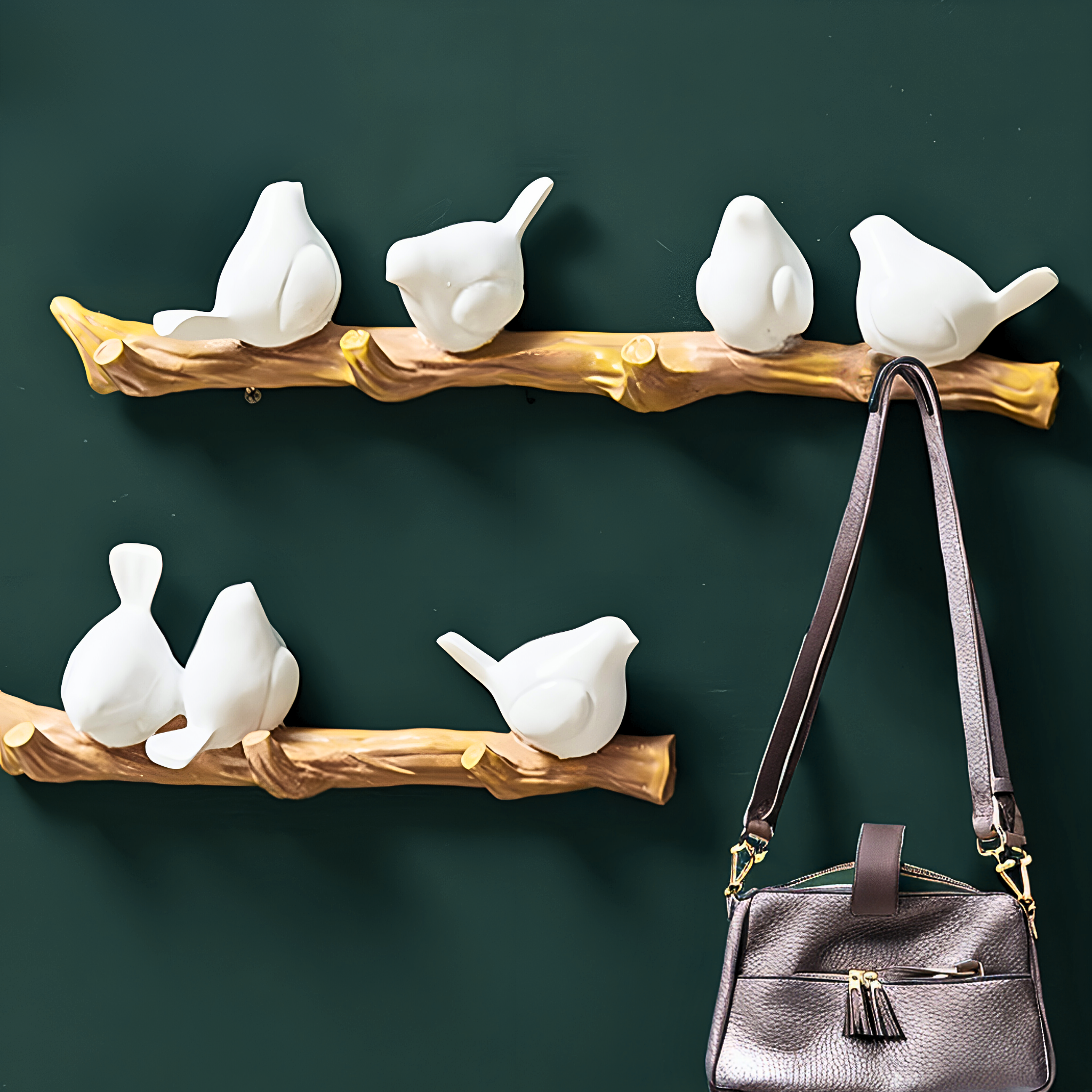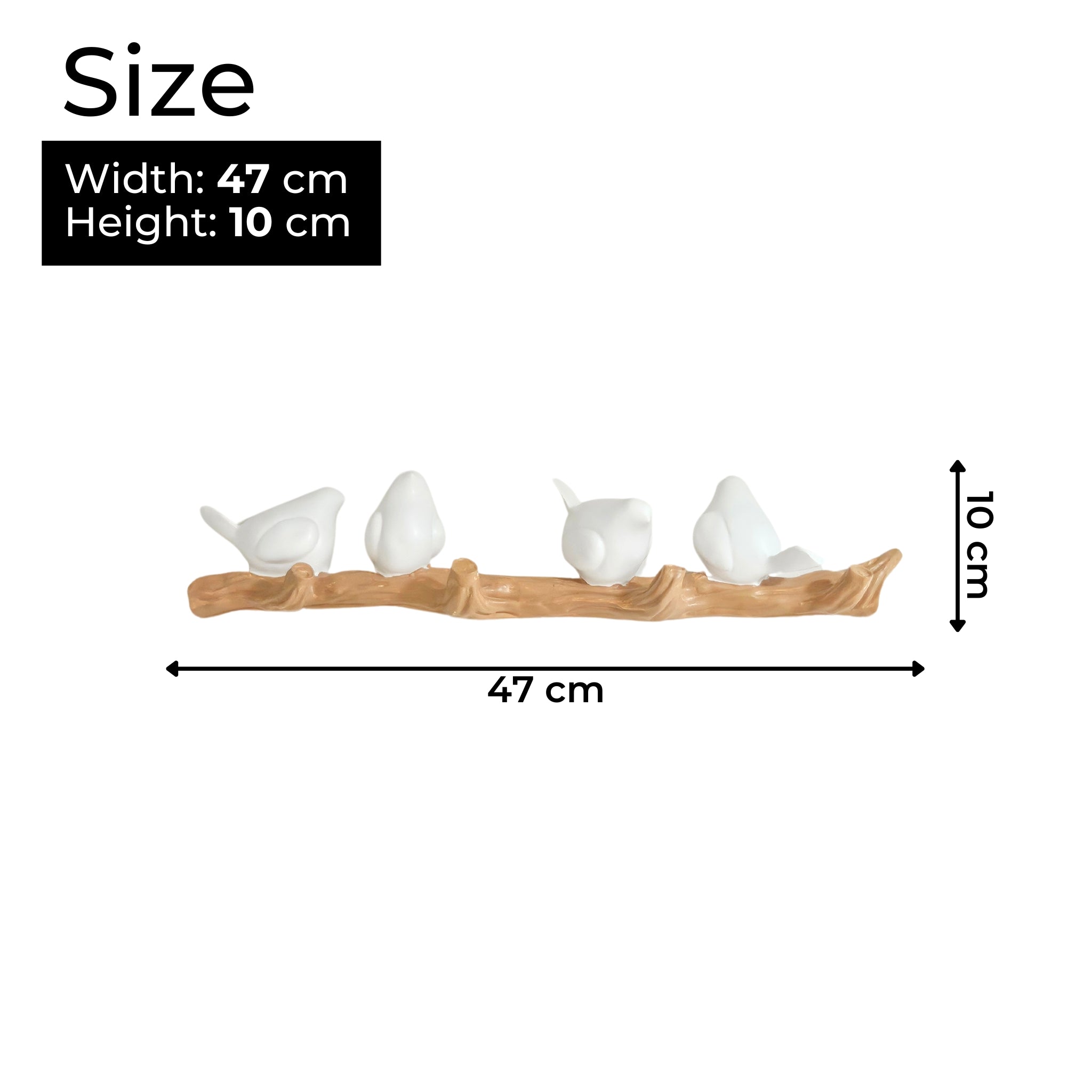 Upgrade your entryway or bathroom with the Functional Wall Hanger featuring an enchanting white birds design. This unique 4-hook coat hanger, crafted from durable polyresin, showcases charming white birds perched on a rustic brown branch. Ideal for hanging coats, hats, purses, or towels, this decorative coat rack seamlessly blends the elegance of farmhouse decor with the practicality of modern design. The wall-mounted coat rack not only provides a functional solution for organizing your space but also adds a touch of nature-inspired beauty to your living room, entryway, or even bathroom. Perfect for enhancing your home with a touch of rustic charm and keeping your space neat and tidy. Ideal as a gift for teens to teach them to be organized.