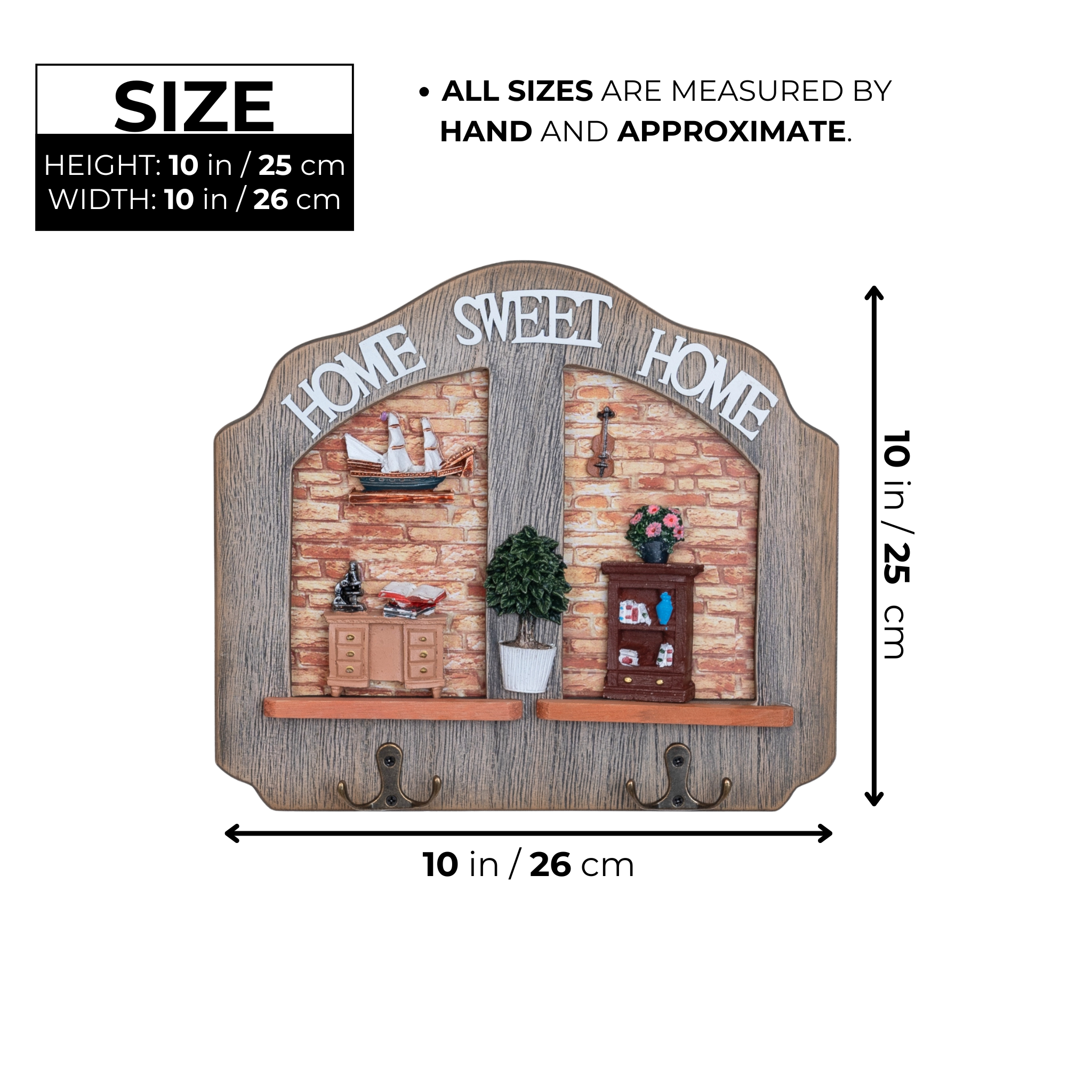 • COMPACT & PRACTICAL: Keep your keys accessible with this 10 inch charming "Home Sweet Home" wooden key holder, featuring double hooks.