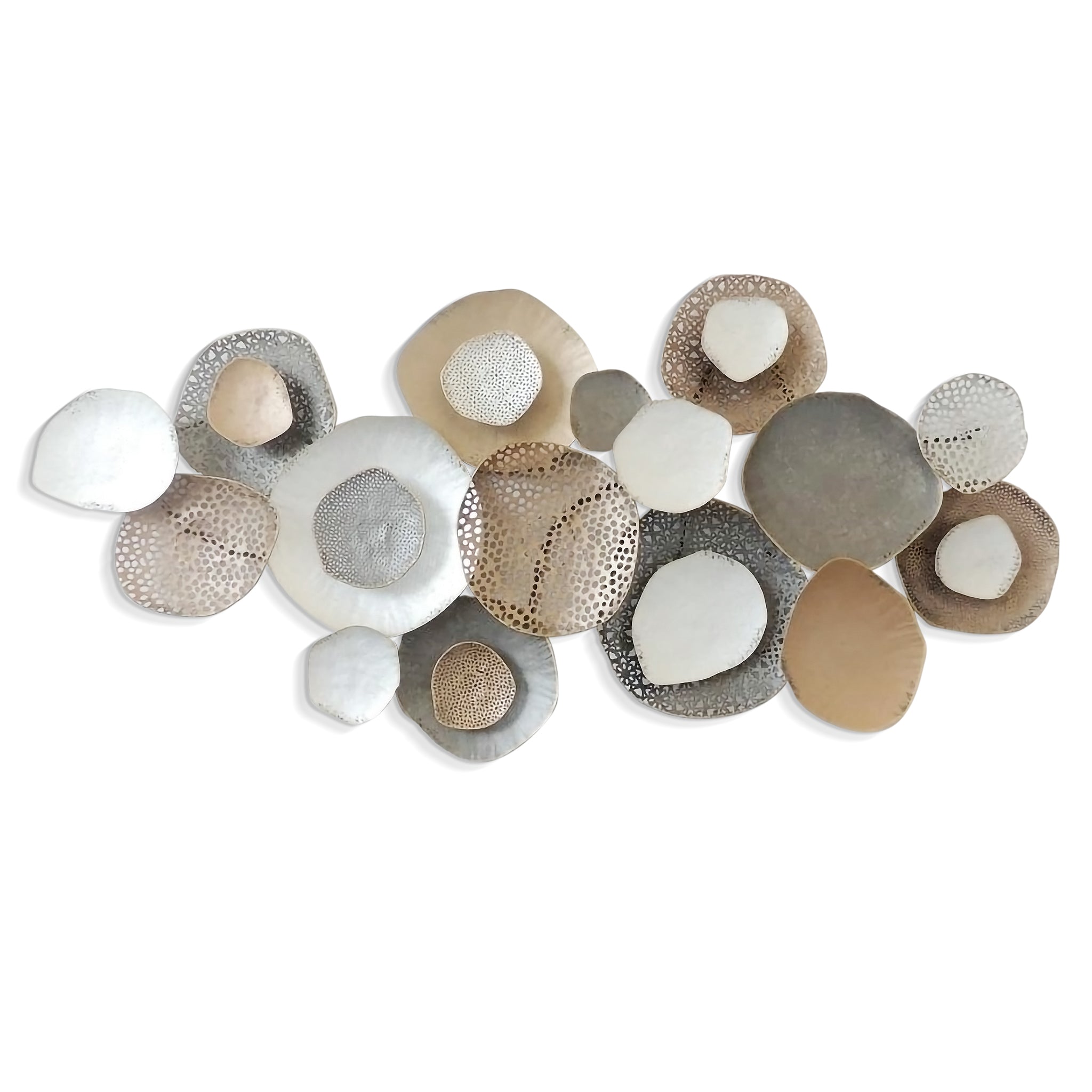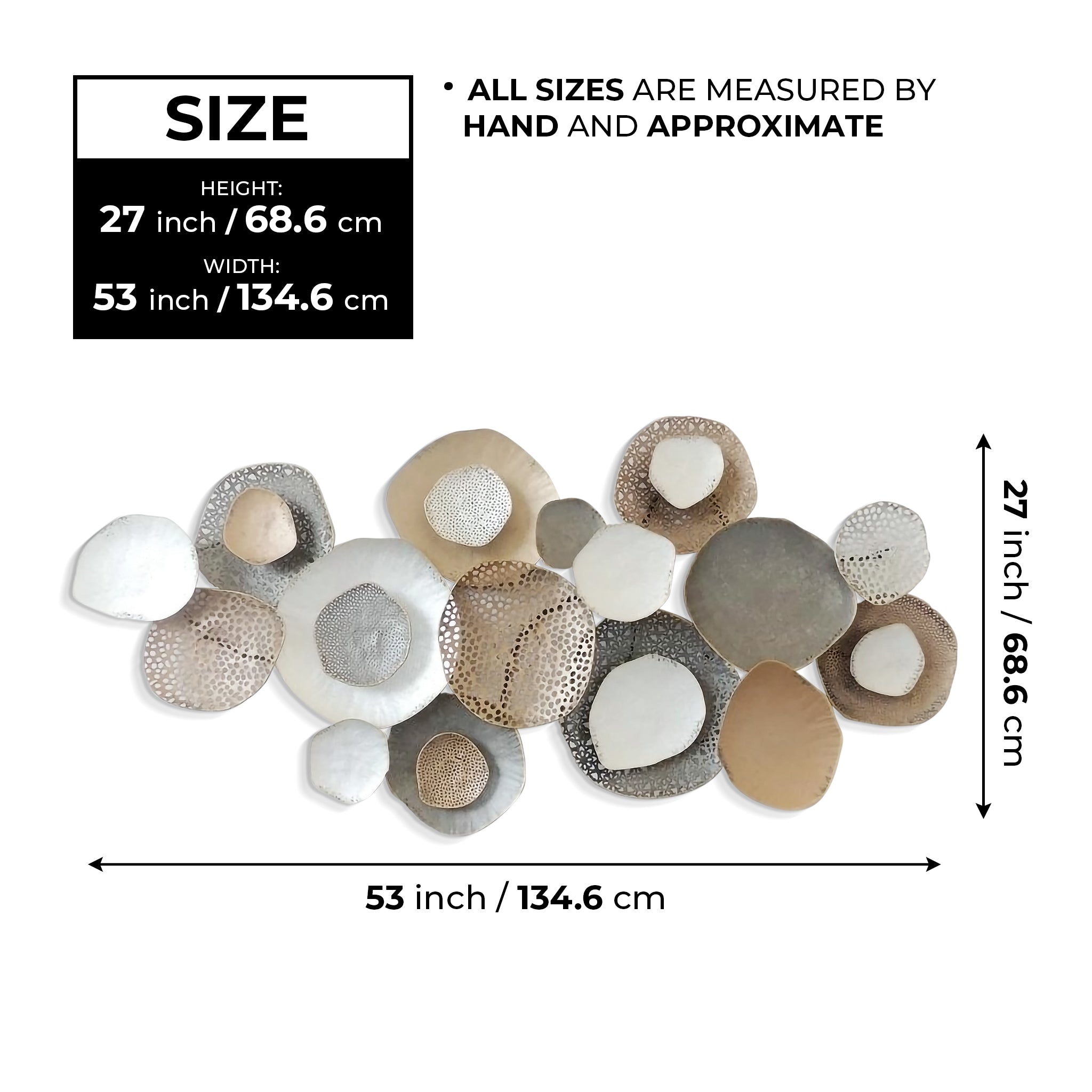 Elevate your space with the Rustic Large Metal Wall Sculpture, a stunning 53" decorative piece blending contemporary design with rustic charm. Crafted from high-quality metal, this wall art features an earthy, muted palette of gold, silver, and white, perfect for adding a touch of elegance to any home or office. The textured, weathered finish gives it a vintage appeal, while the handcrafted details highlight its artisanal quality. Whether used as a statement accent in your living room or as a stylish addition to your office décor, this handmade sculpture will bring a sophisticated, earthy ambiance to your space. Ideal for those seeking a balance between modern aesthetics and rustic charm.