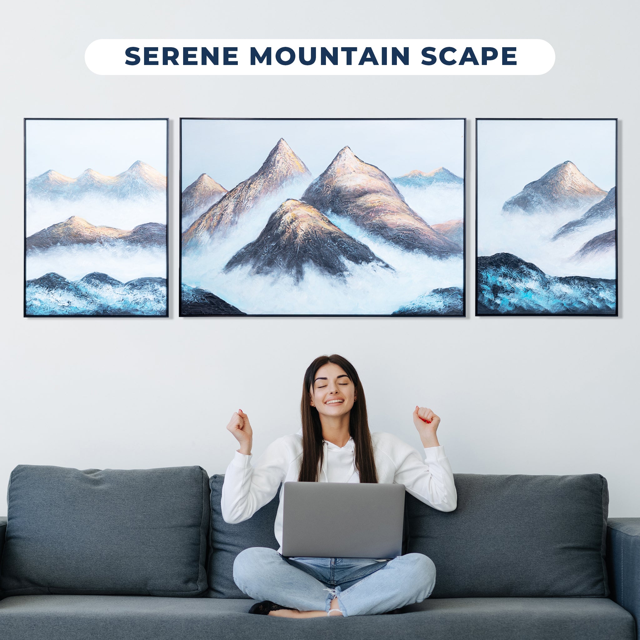 Impasto Mountain Scenery Set of 3 Wood Canvas Art, 28" Thick Textured