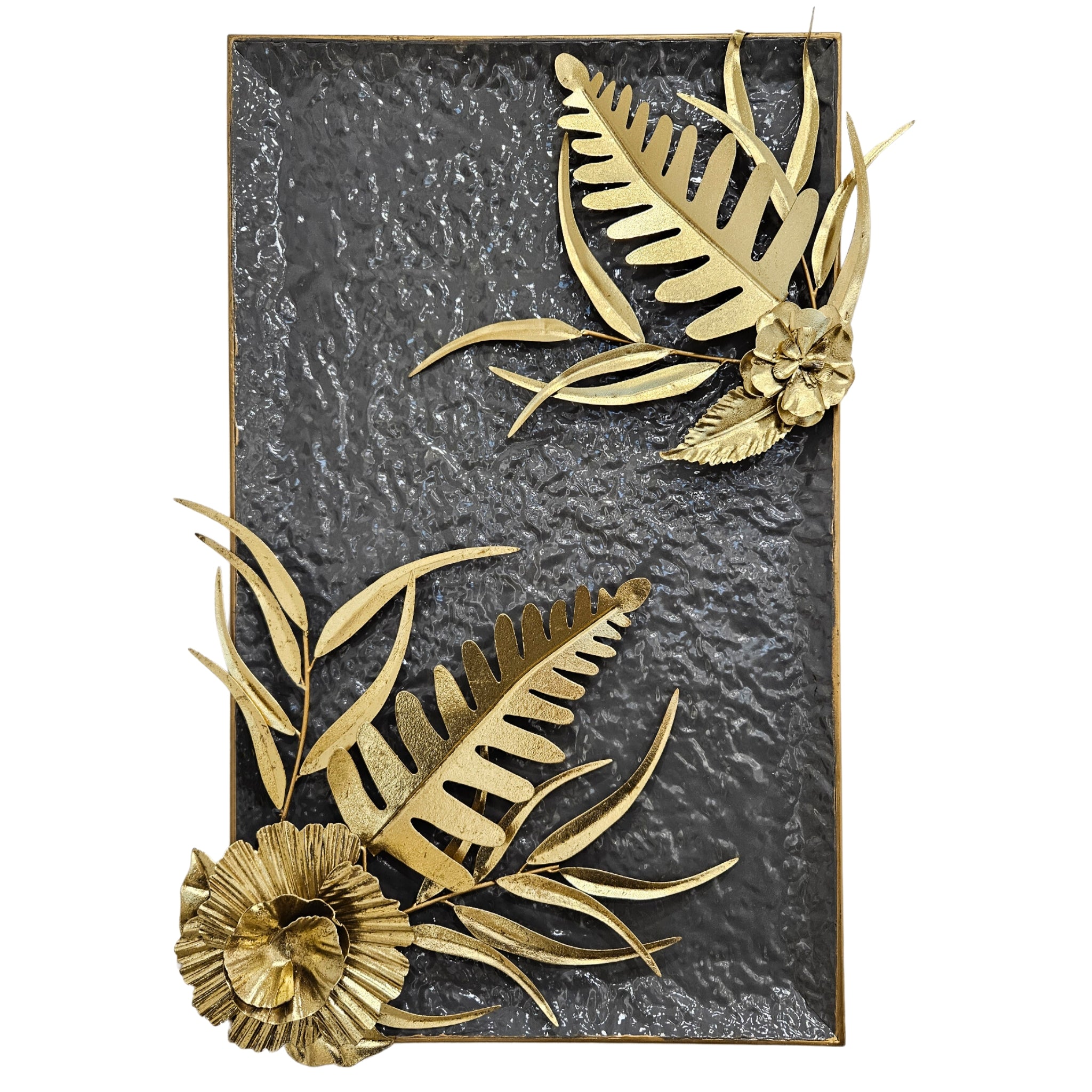 Floral Metal Wall Art Home Decor Large Wall Hanging Gray Gold 27 inch 69 cm Botanical