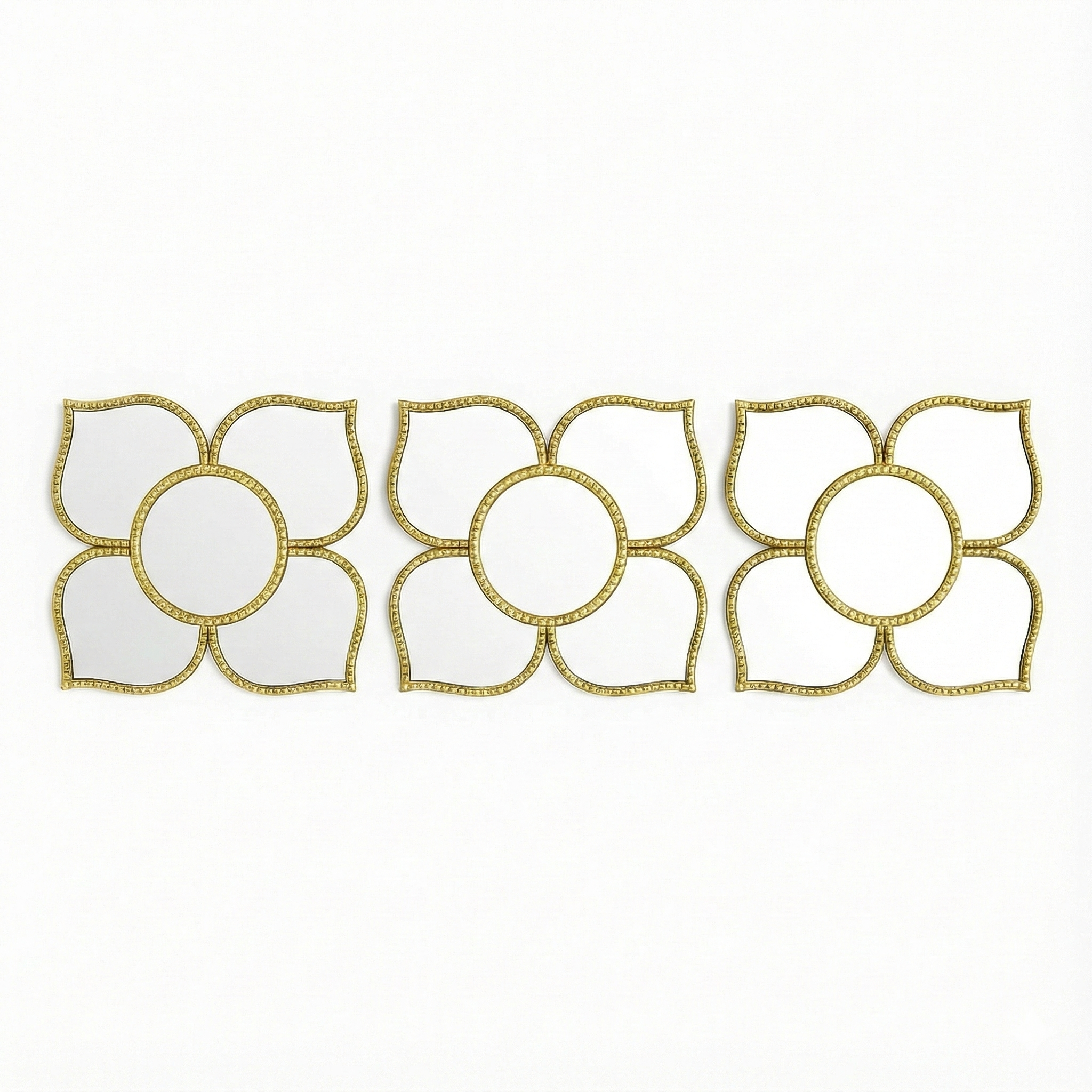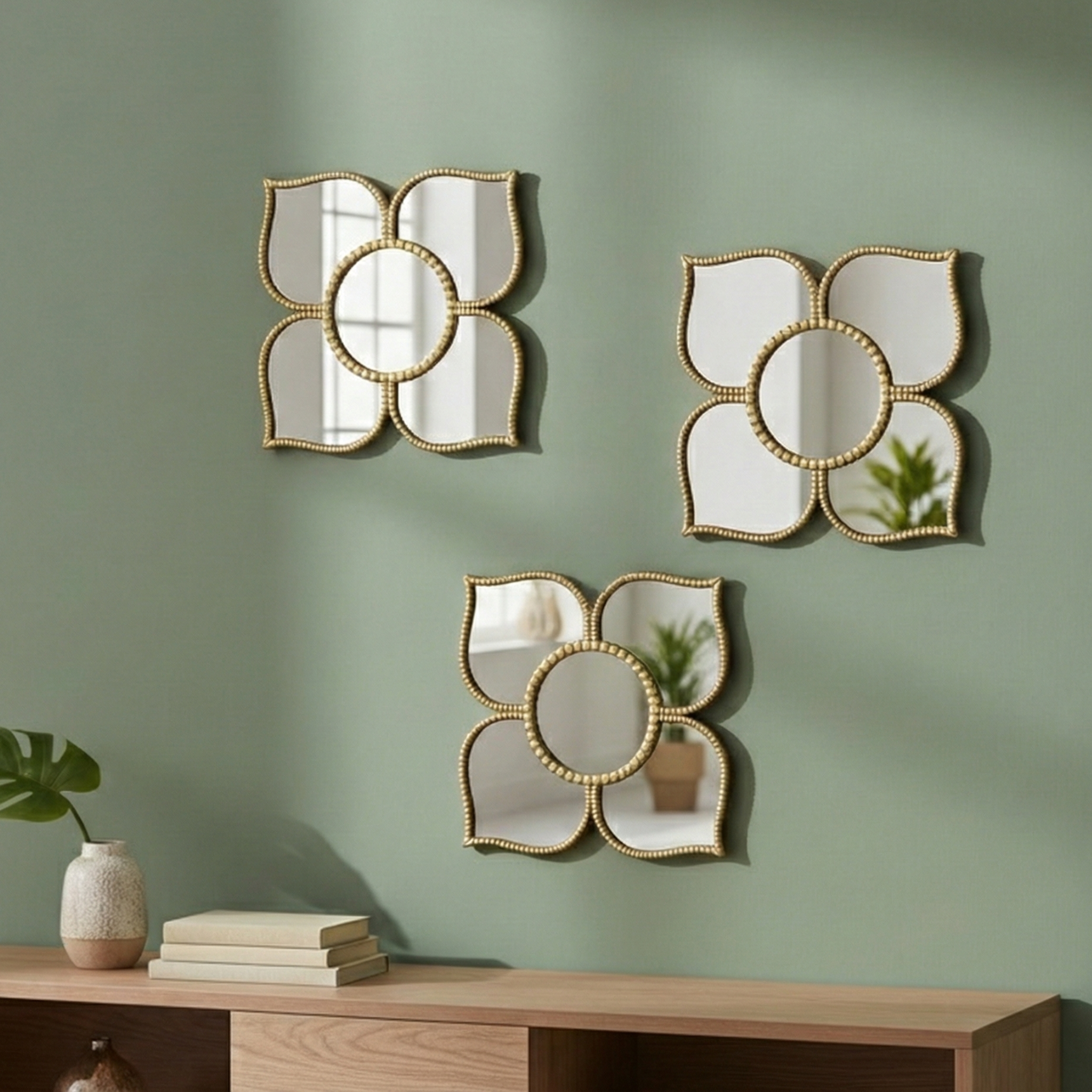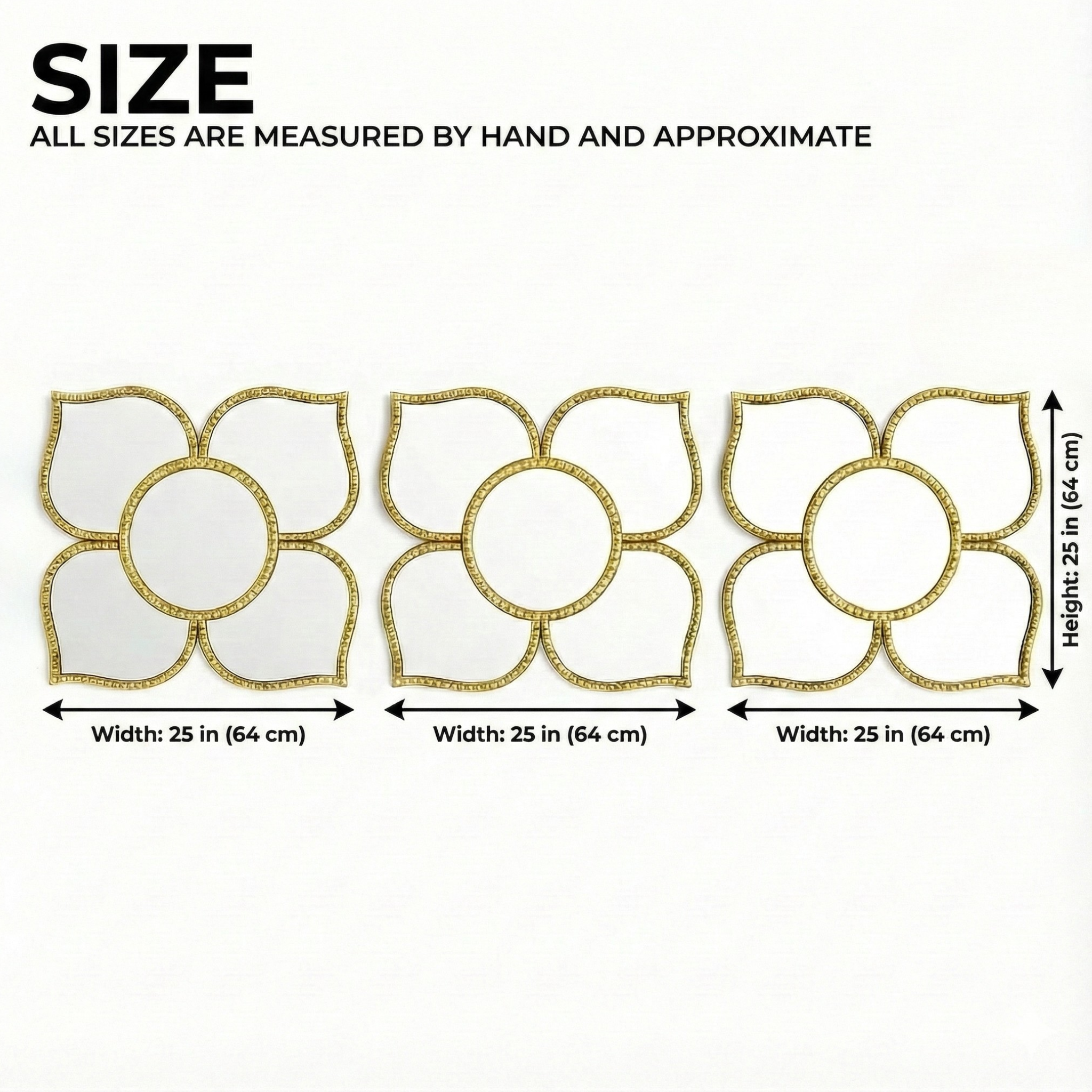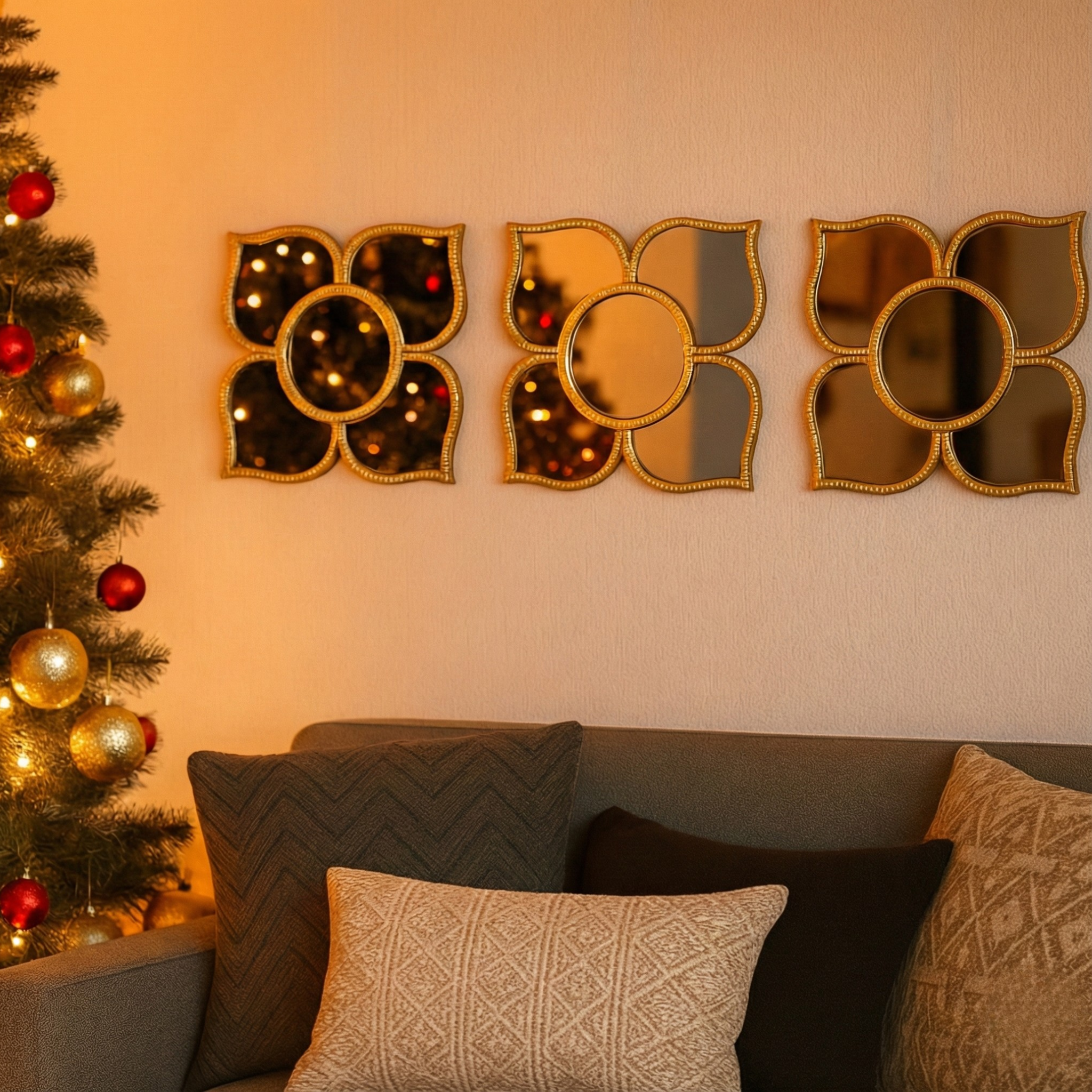 Golden Floral Wall Mirror Set, Traditional Modern Diwali Decor Gift, 25 cm Mirrors Pooja Room Decor
