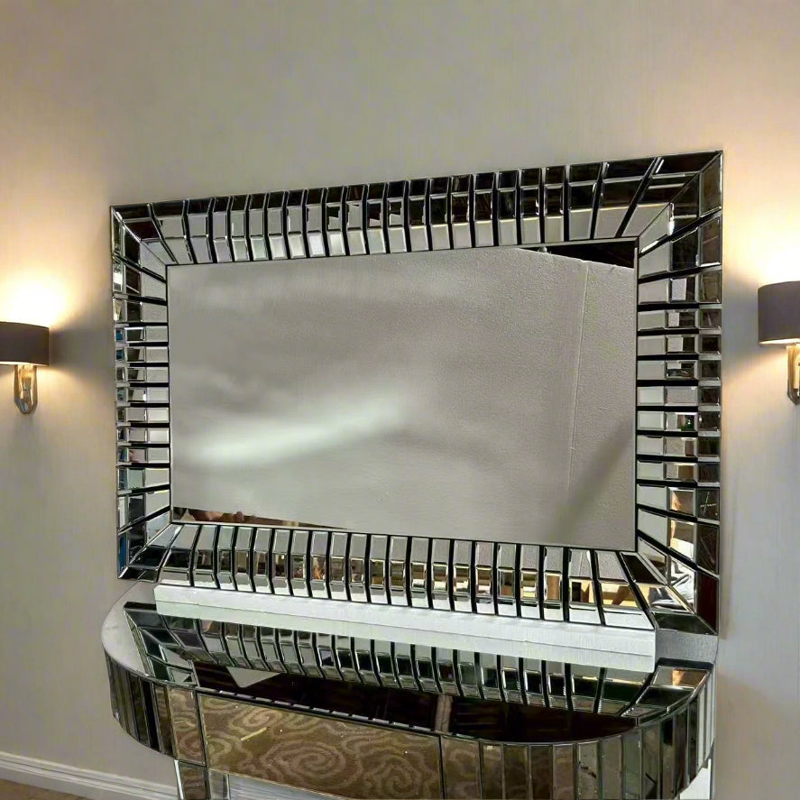 Make a bold statement with this Large Rectangular Glass Mirror measuring an impressive 120 cm by 80 cm (approximately 47 by 31.5 inches) or 4 feet! Its generous size offers a striking visual impact, making it the perfect centerpiece for any room, whether mounted horizontally or vertically to suit your space and style. Crafted with precision and cutting-edge glass work, this mirror delivers a sharp, distortion-free reflection that enhances the clarity and brightness of your environment. The smooth, polished edges add a refined finish, highlighting its modern, minimalist design.