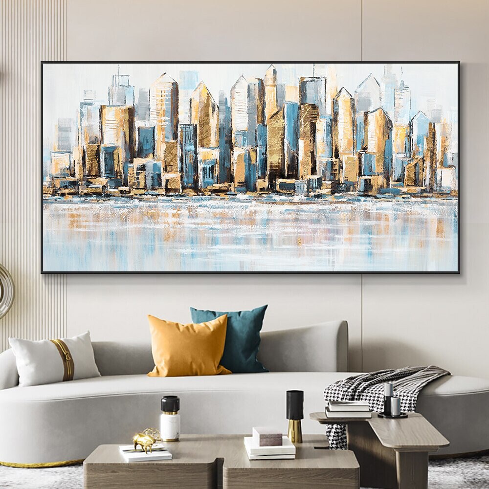 This stunning skyscraper artwork stands out not only for its visual appeal but also for its exceptional quality. This original painting is more than just a decoration; it's a statement of your unique taste and an investment in your home's aesthetic. As a hand-painted and original wall painting, it carries the authenticity and creativity. Bring home this slice of the city and let your walls tell a story of urban elegance and artistic flair.